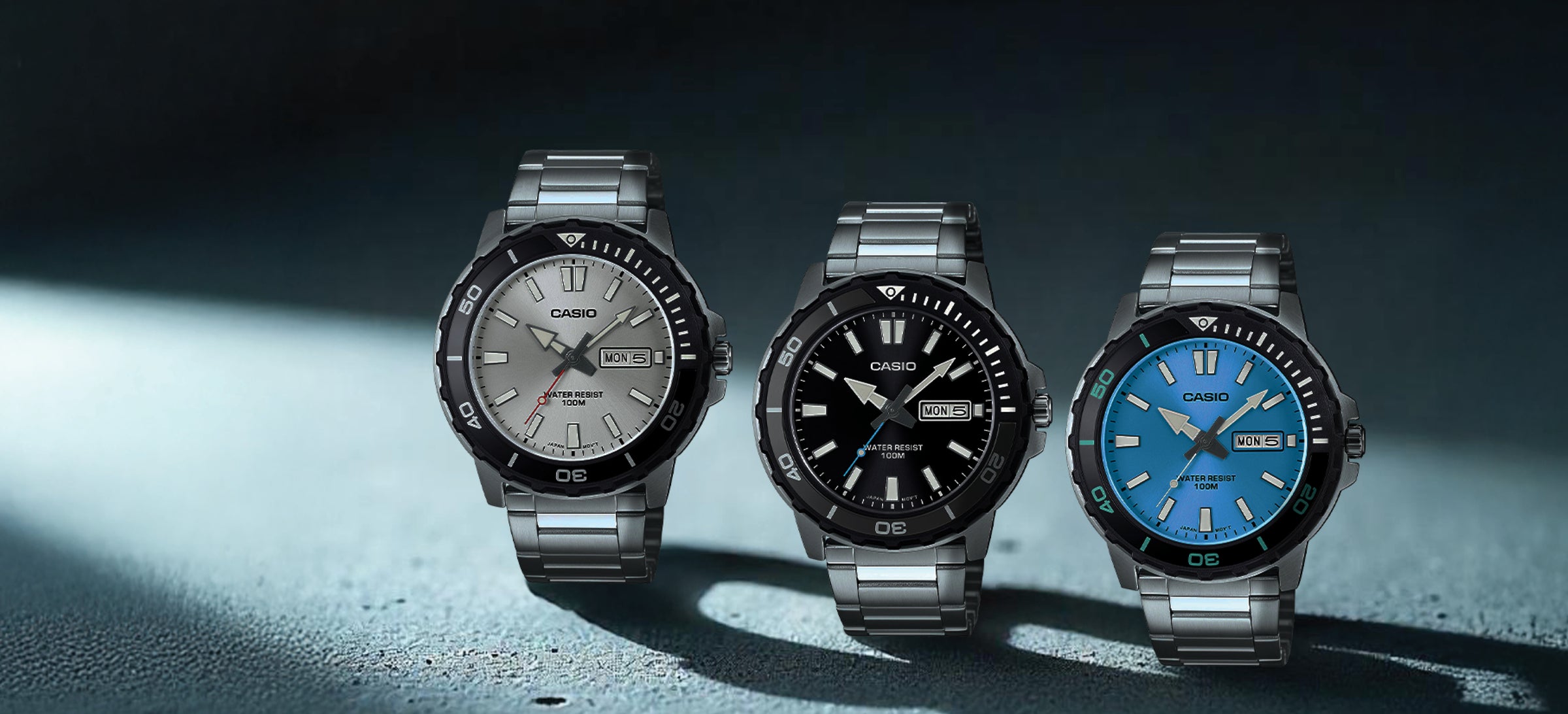 Minimalist design meets confident styling in the new CASIO MTD125D series, a polished take on everyday timekeeping. With its sleek silhouette and versatile dial colours, this piece feels refined yet ready for anything.