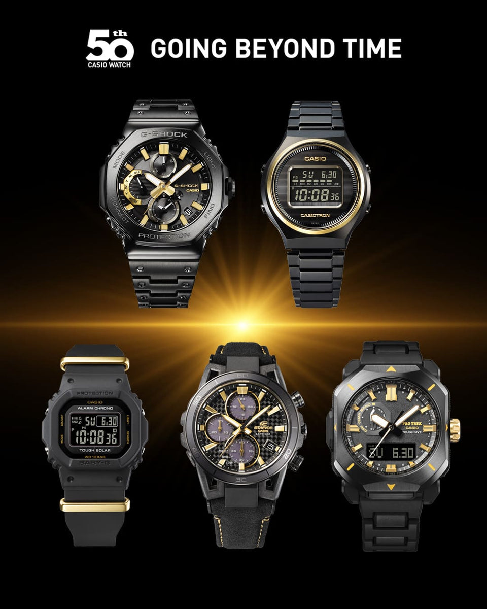 CASIO is releasing five commemorative watches from its CASIOTRON, G-SHOCK, EDIFICE, PRO TREK, and BABY-G brands. They all feature a shared design theme that evokes the first flicker of light, where the creation of new value begins.