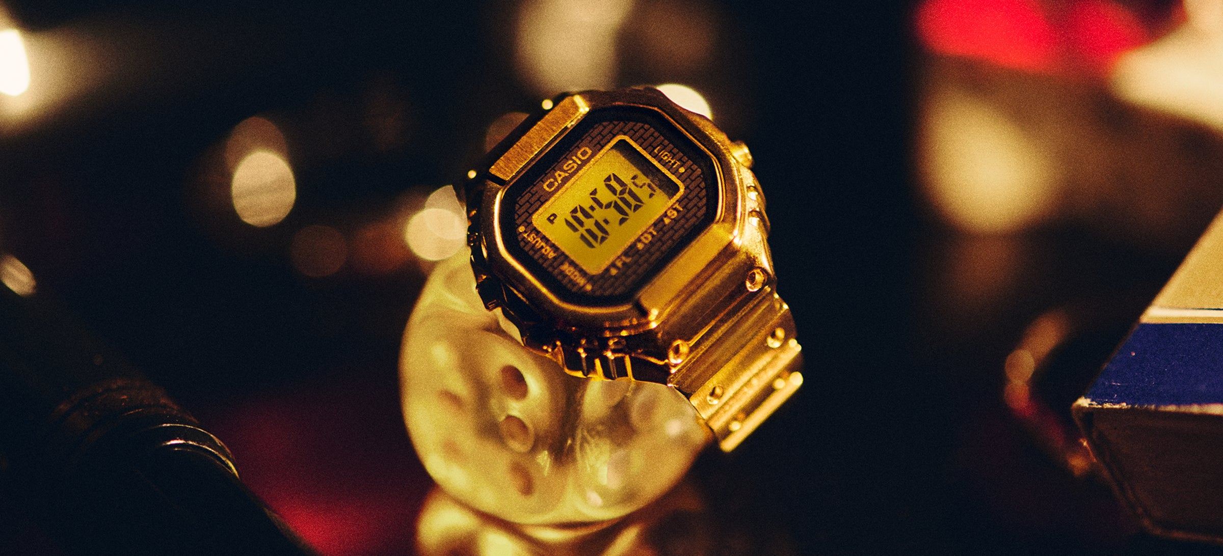 Following the excitement of the original release, CASIO introduces a bold new colourway: CRW001G-9D. This striking model takes the unique ring-style timepiece concept and reimagines it in a rich gold finish, blending vintage design with modern creativity.
