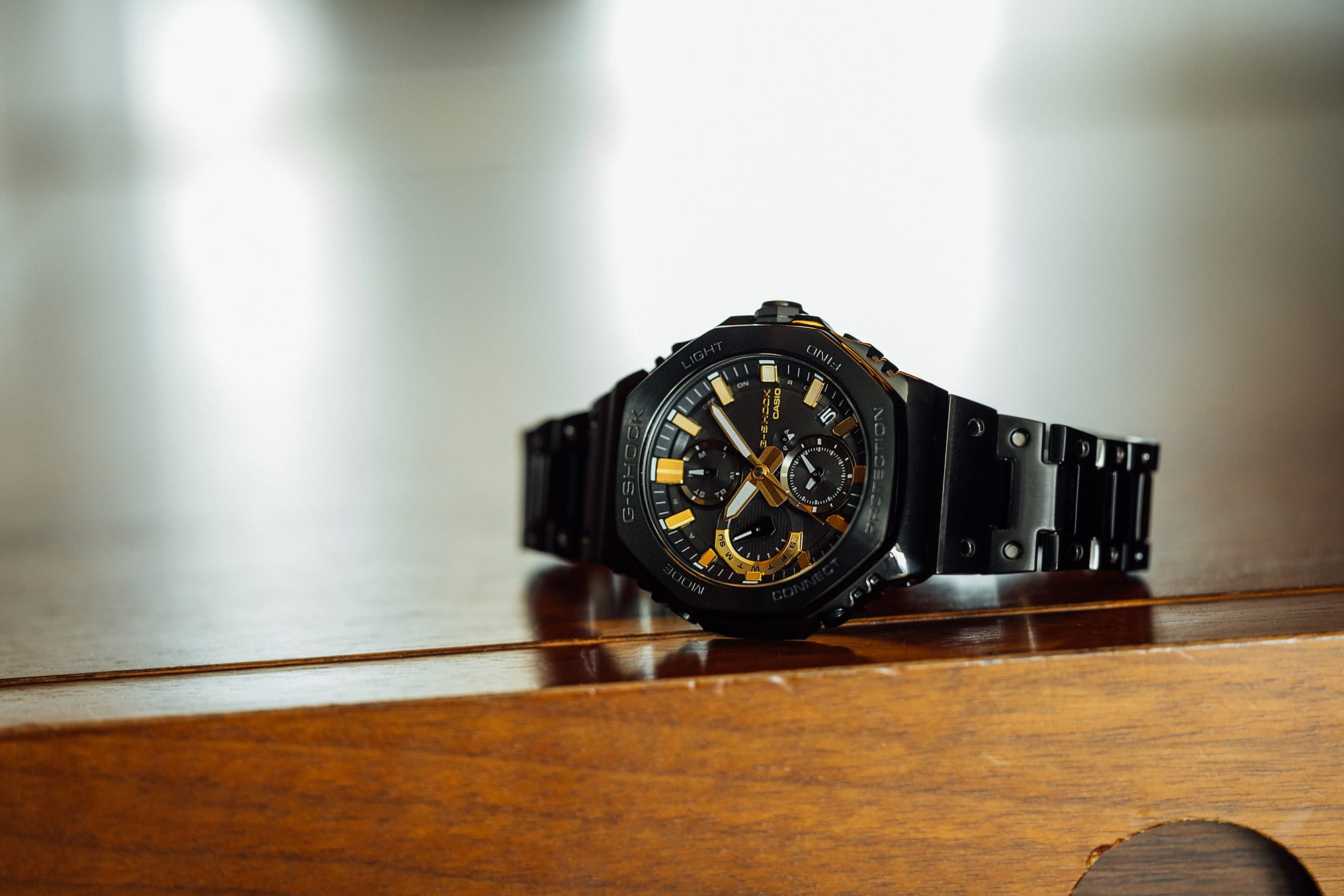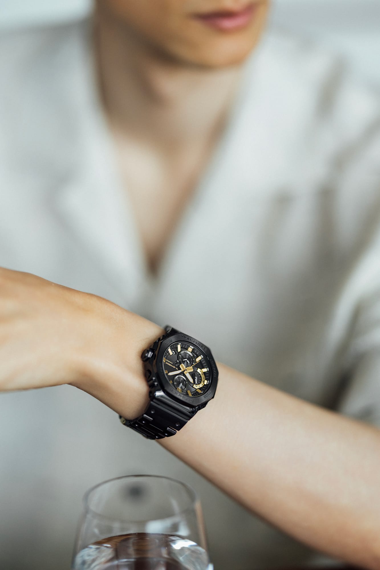 The timepiece features a hypnotic interplay of black and gold, symbolising CASIO’s journey from humble beginnings to its gilded status today. This colour scheme again illuminates the collection’s ‘Zero to One’ philosophy, bringing light (creating one) out of darkness (from zero). While the black and gold combination has long been a hallmark of G-SHOCK’s design heritage, the 50th-anniversary edition reimagines this contrast by subtly reducing the prominence of gold, creating a more dramatic balance between light and shadow. The GMCB2100ZE-1A now joins the ranks of CASIO’s iconic black and gold timepieces, including the GA110GB-1A, GSTB100GB-1A9, GMB2100GD-9A, and GSTB500GD-9AER, cementing its place in the brand’s celebrated pantheon of timeless designs.
