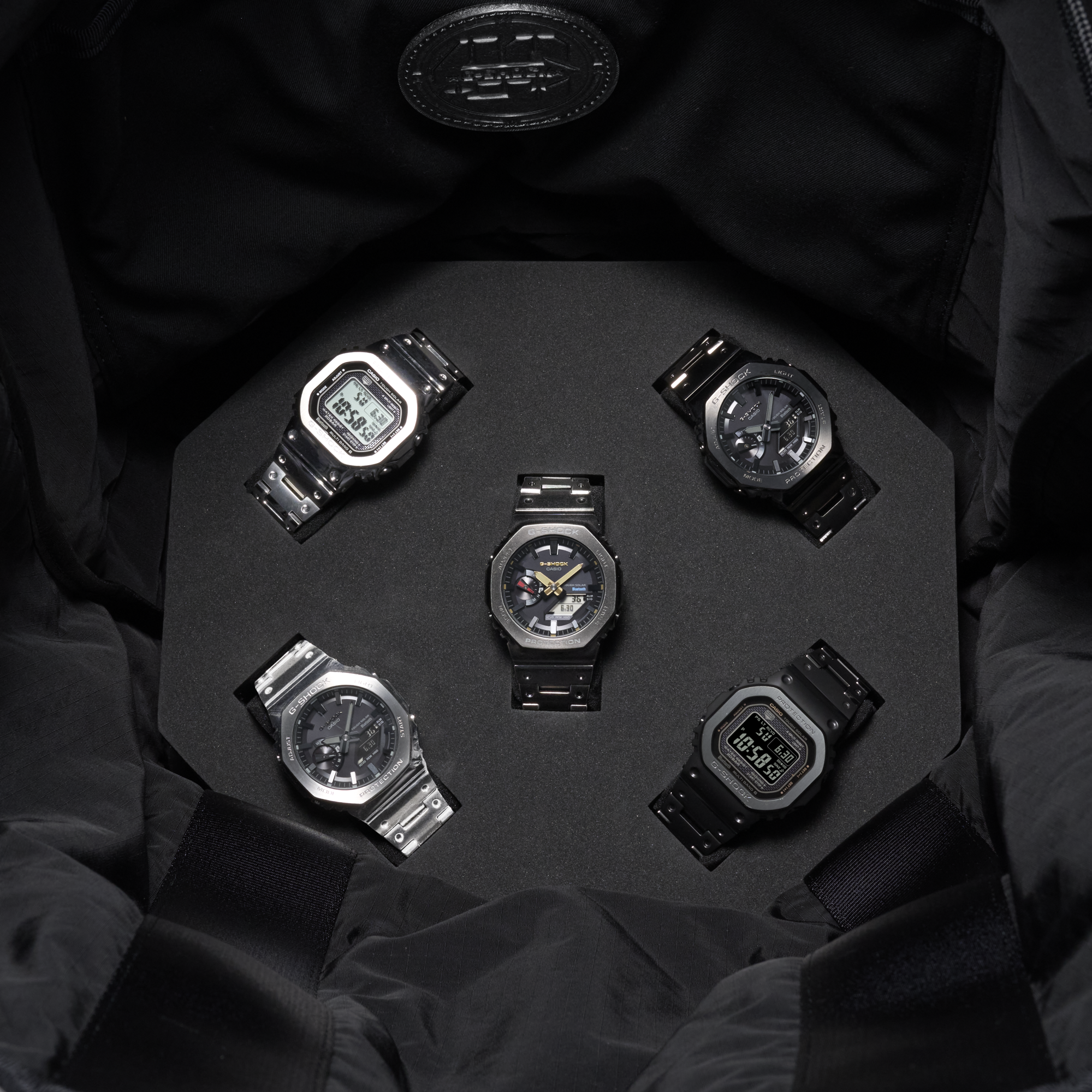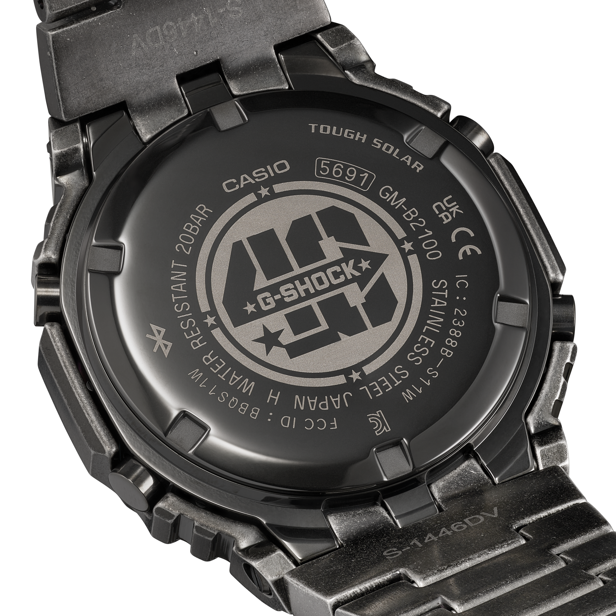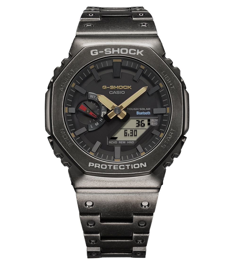 True to the toughness-driven identity of G-SHOCK, this special edition gives the full metal analog GM-B2100 a unique aged finish, adding a vintage touch to the octagonal form inherited from the design concept of the very first G-SHOCK, the DW-5000. Red, blue, and gold accents on the dial also pay homage to the G-SHOCK debut.