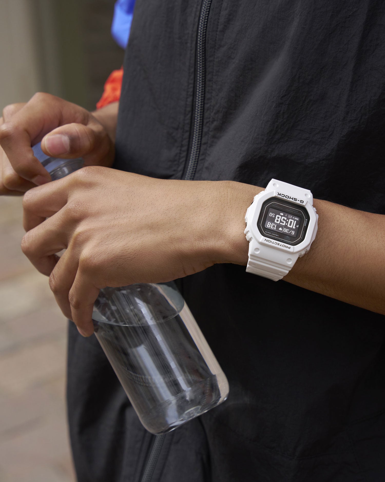 Now, just because you’re pounding the pavement doesn’t mean you can’t tread lightly on the environment. The bio-based resin case, bezel and band reduces the carbon footprint of the watch, while recycled packaging materials help us stride towards a more circular economy in the future. The G-SQUAD series does all this while still retaining the vintage pulse that made it legendary in the late 80s – including the iconic octagonal form.