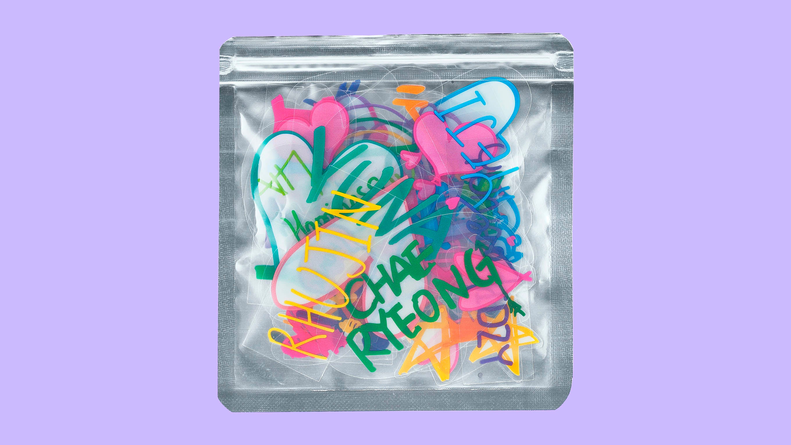 A set of 50 original stickers is included, featuring illustrations specially drawn by ITZY members. Fans will have fun finding things to decorate with their favourites to show support.
