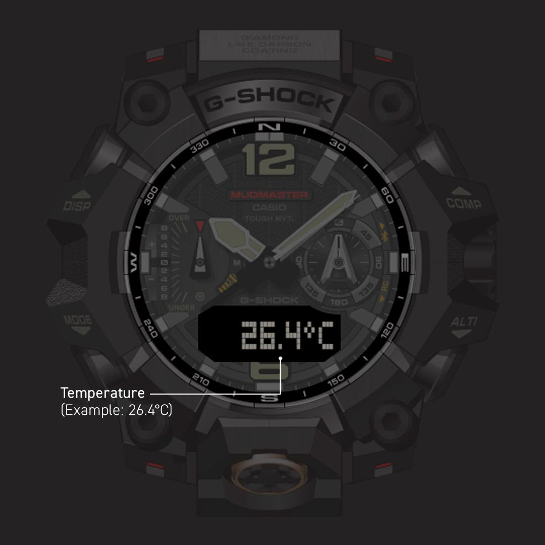 *When measuring the ambient temperature, be sure the watch is removed from the wrist to avoid interference from body temperature, perspiration (water droplets), direct sunlight, and other external factors.