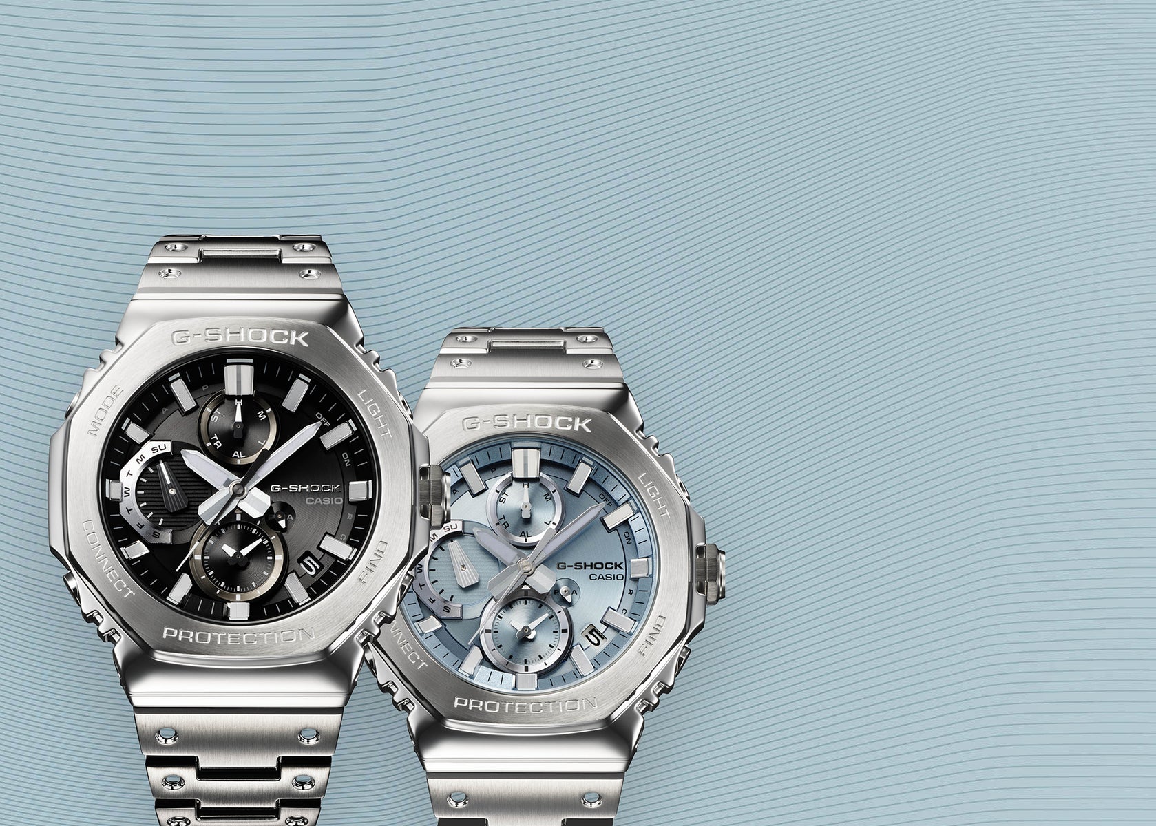 Steel your resolve with the G-SHOCK ‘Full-Metal Chronograph’ edition, the latest milestone in the powerhouse 2100 series. Building on the unshakeable history of the G-SHOCK DW5000C, this sleek two-pack turns back the clock while forging a new path for the acclaimed line-up. The full-metal upgrade celebrates the early 1980s visuals of its predecessor, showcasing a classic octagonal bezel and dimpled hand design while modern tech ensures it's far more than just a nostalgic nod.