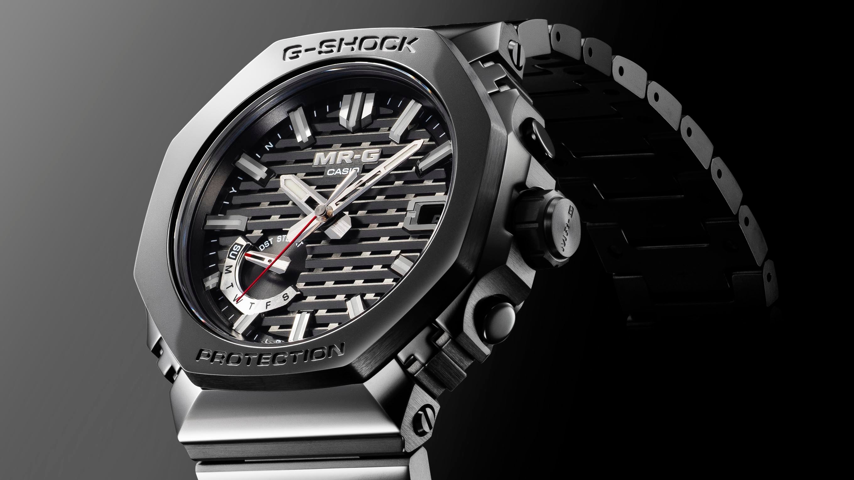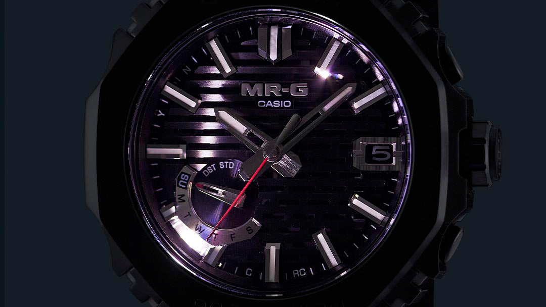 Of course, it wouldn’t be the lauded MR-G line without a whole repertoire of technical wizardry, including G-SHOCK’s patented impact protection. Solar-powered timekeeping with Bluetooth and radio control will ensure accurate timekeeping no matter where you are, while high-brightness LED light is the ultimate nocturnal companion.