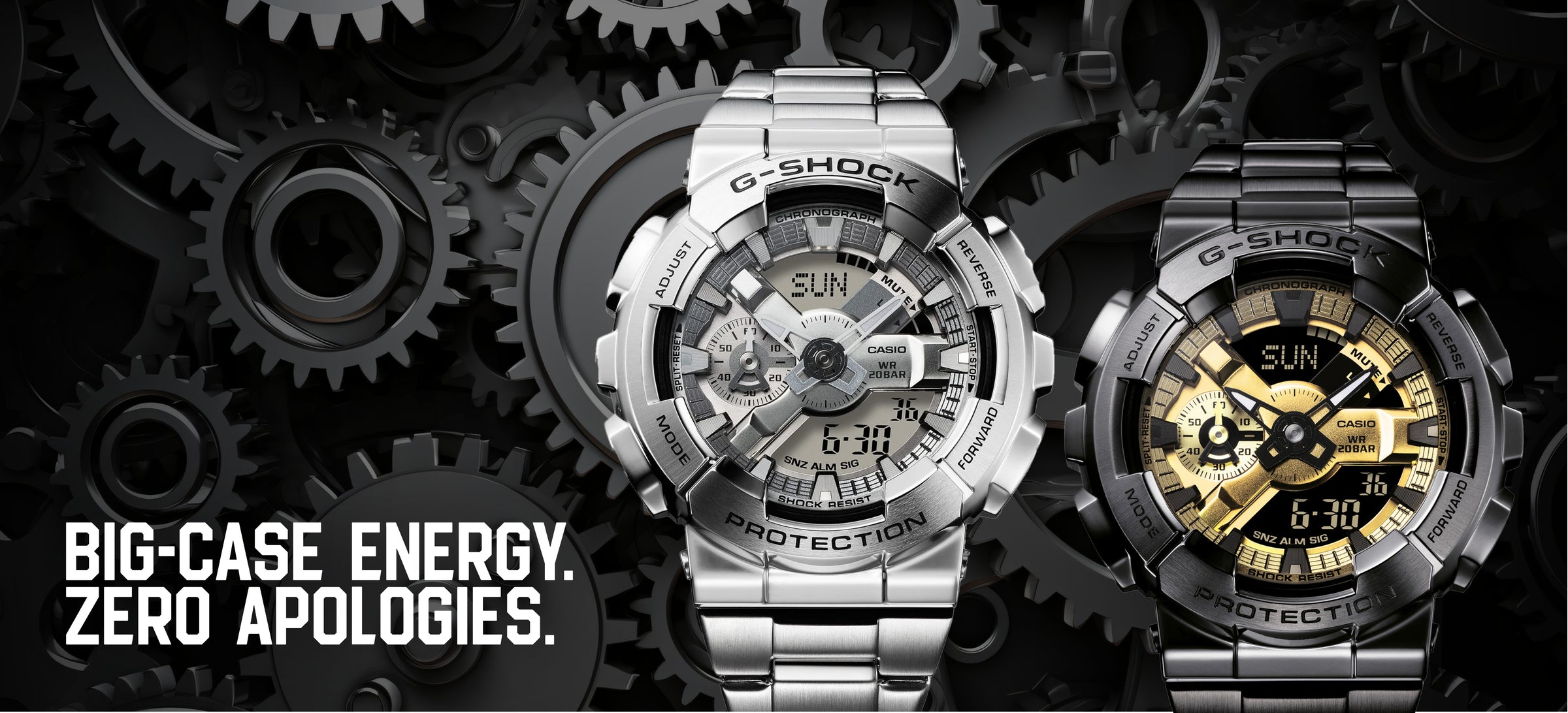 When it comes to watches, few collections have swung more confidently between rugged utility and serious style than the 110 Series. Launched in 2010, the GA110 was an instant classic – a big-case beast that muscled its way directly into G-SHOCK’s elite tier. With its layered dial, exposed gears, and hybrid analog-digital interface, the 110 wasn’t just another watch – it was a wrist-mounted machine, engineered for impact and built to be noticed.