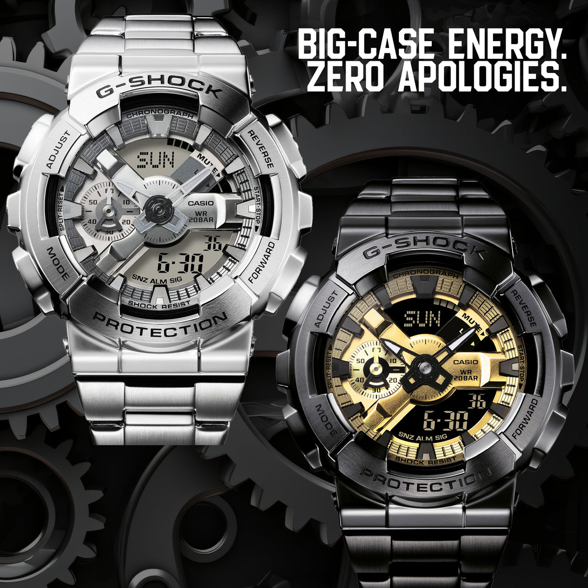 Spin the hands forward to today, and the 110 Series has entered a bold new era. Meet the GM110D-8A and GM110BD-1A9 – a pair of metal-clad masterpieces that take everything the GA110 made iconic and crank them up to 11. This is style and substance in a combination more dramatic than a Tokyo skyline.