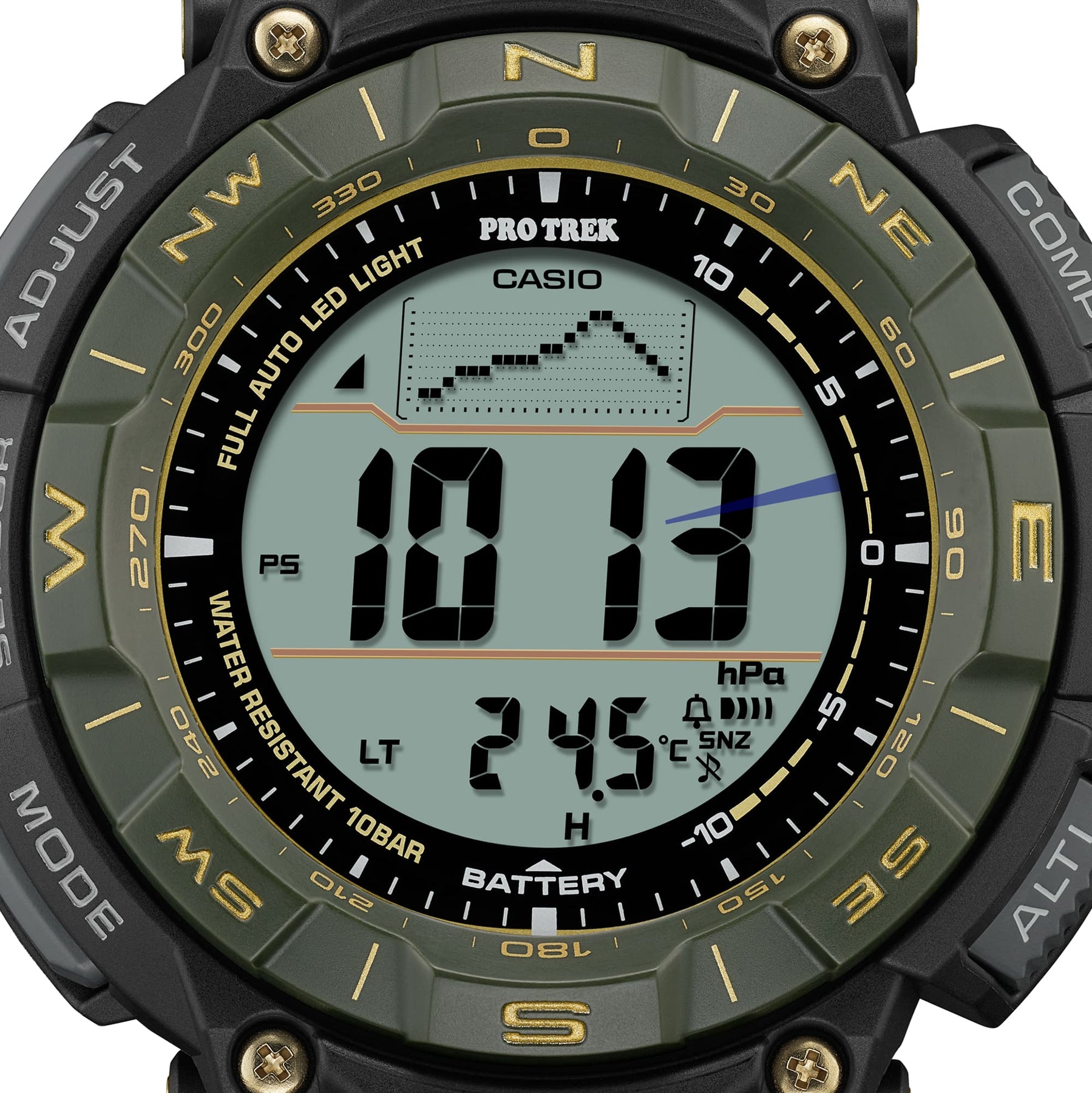PRO TREK watches deliver triple sensor measurements to keep you updated with direction, barometric pressure, altitude, and temperature readings. This PRO TREK is the only one equipped with both Bluetooth and Multiband 6, two ways to ensure precision timekeeping. With Multiband 6, even when far away from the Internet, the PRW-B1000 tunes in to radio signals to calibrate the time in places as far flung as Japan (2 stations), China, North America, the UK, and Germany.