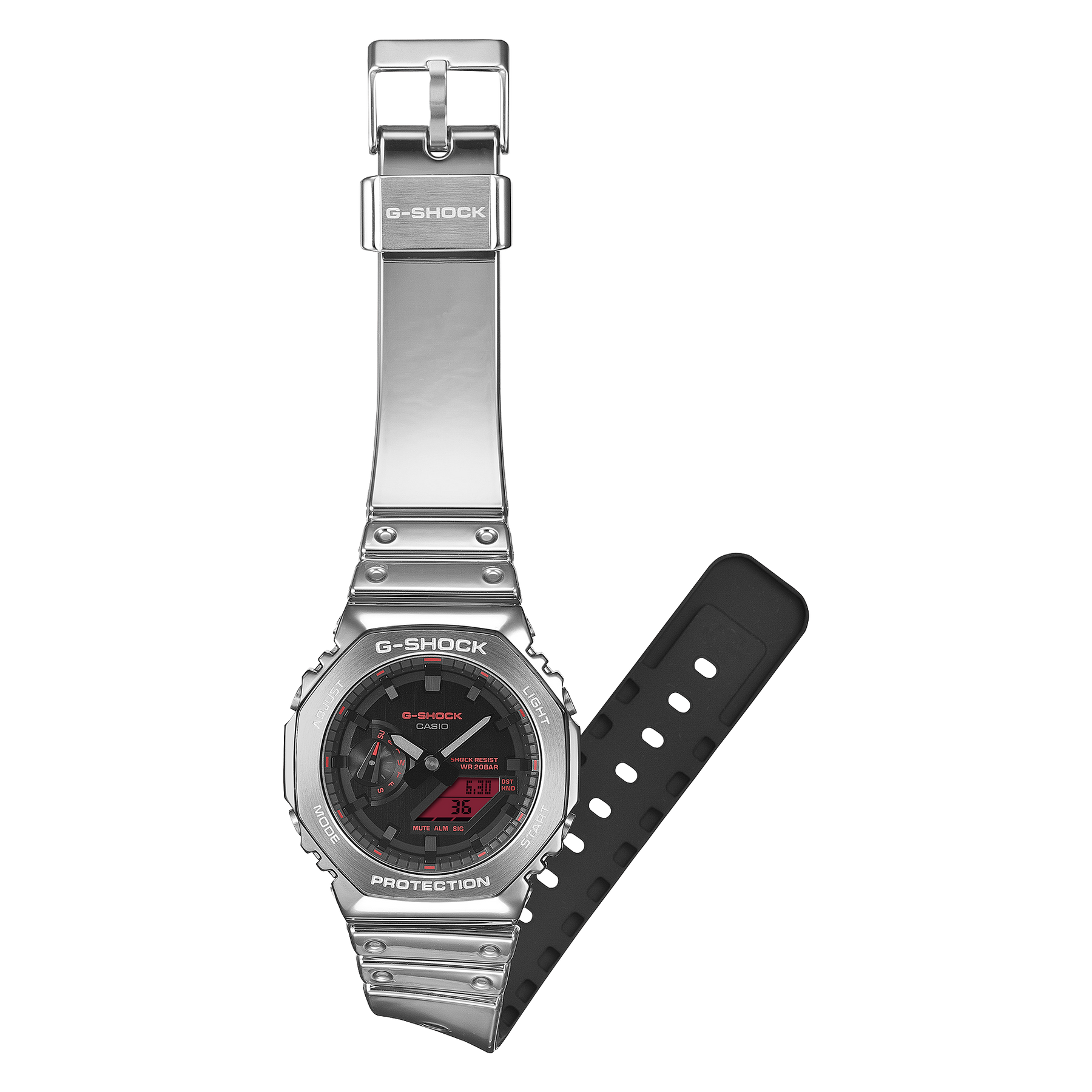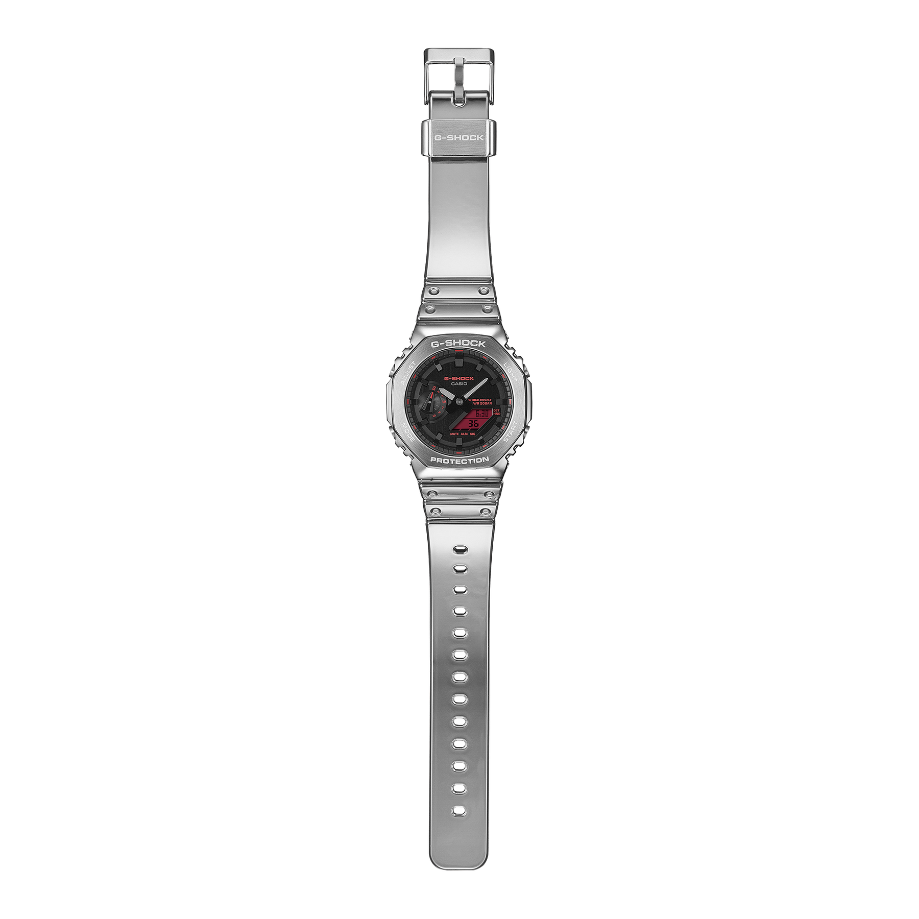 Go metal-clad in fine style — ever-evolving G-SHOCK iconic styles with the metal bezel and bold touches of red loved by trendsetters and athletes the world over.