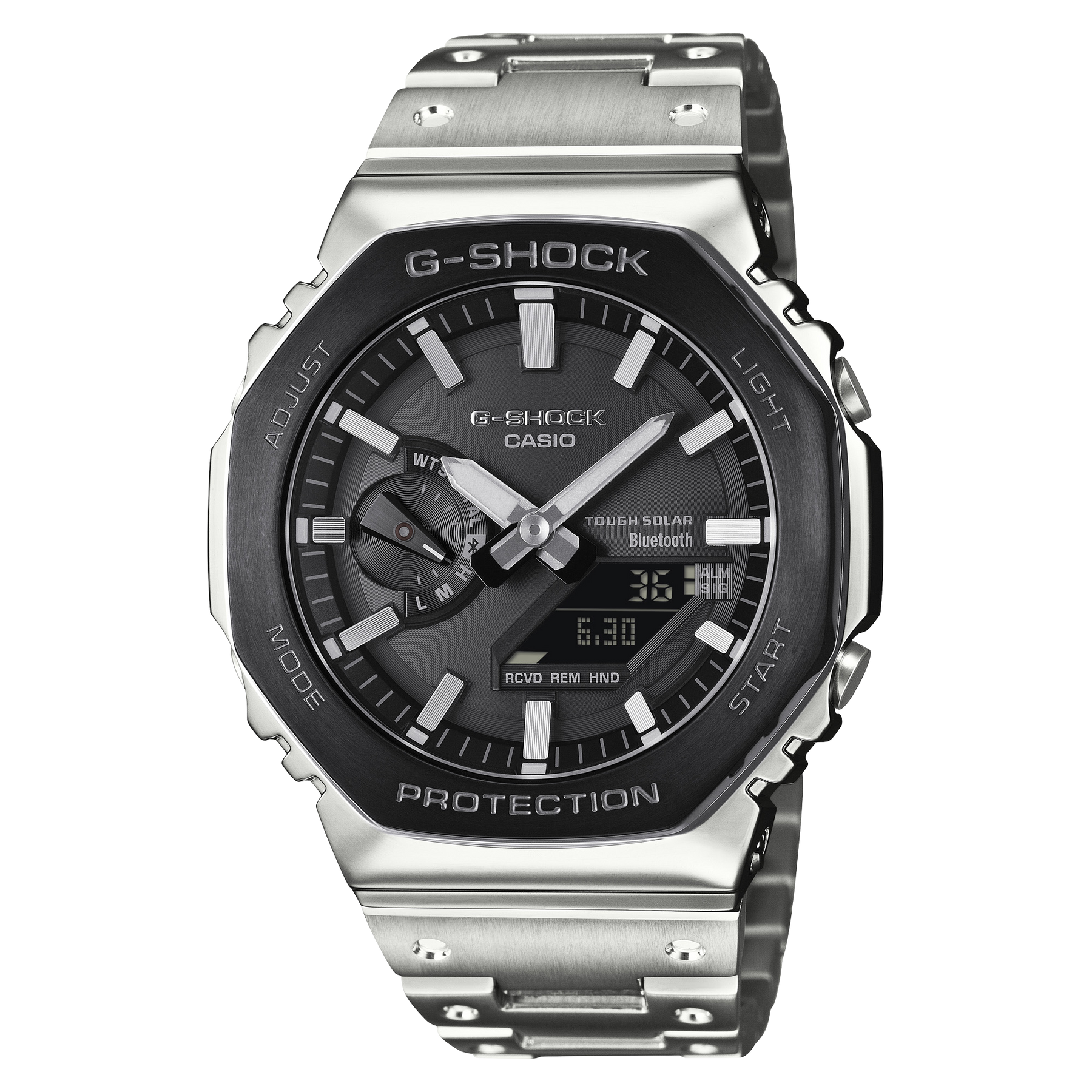 Striking black on silver projects G-SHOCK toughness: Monochrome design suited to a wide range of styles
