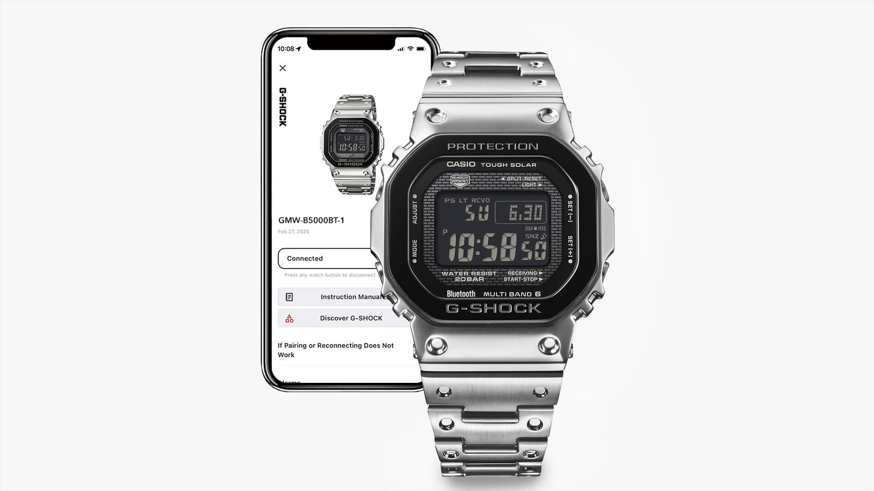 The stainless-steel case of the GMW-B5000BT features the same screw-lock construction as the original to ensure a tight seal.