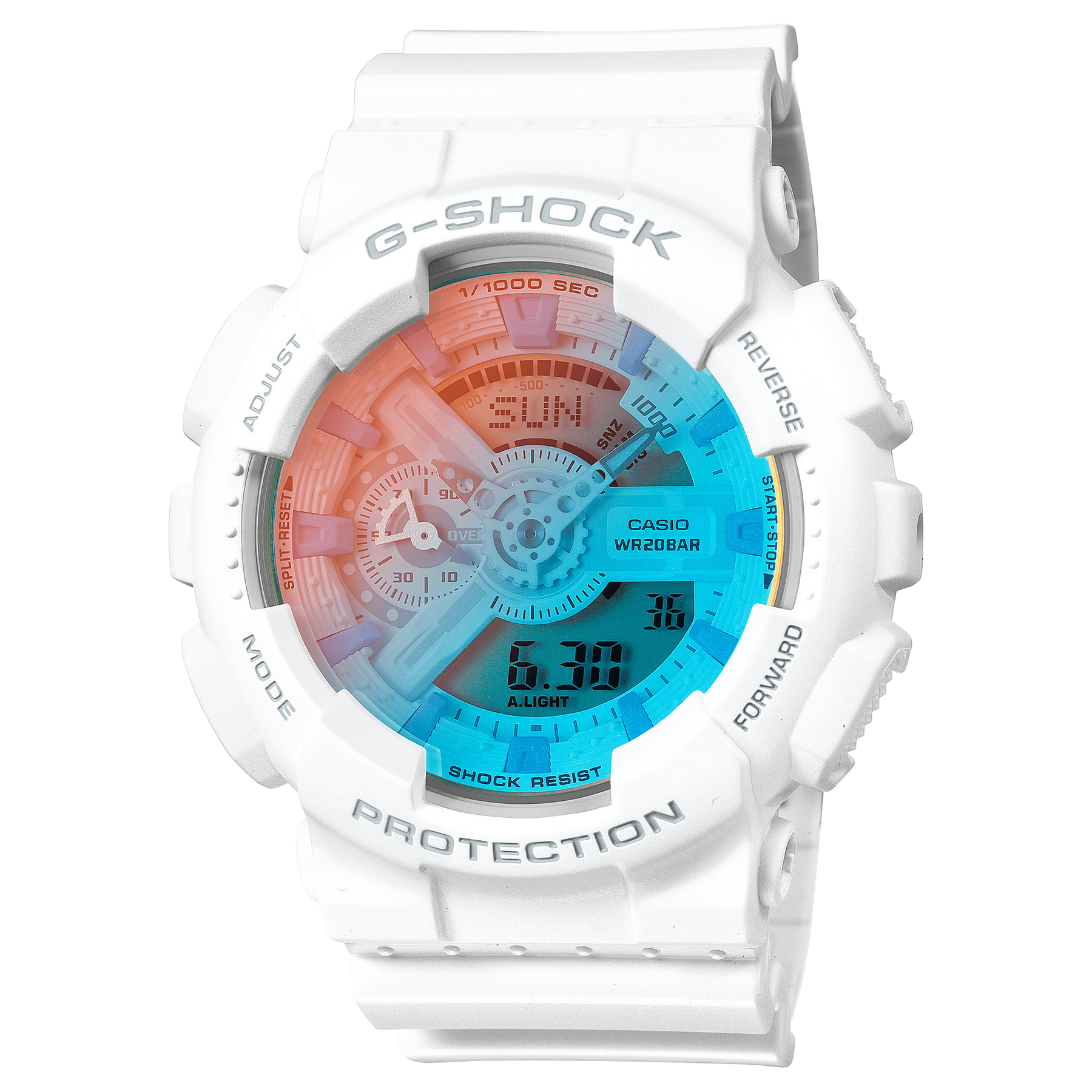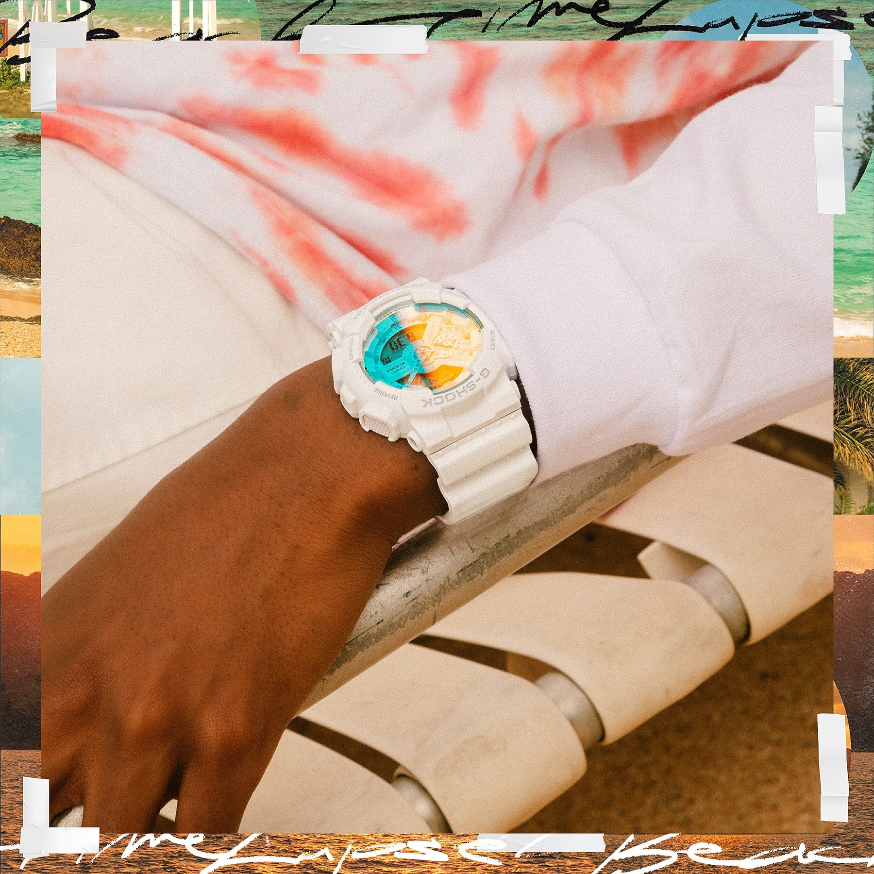 Set your mood to summertime and easy with a radiant G-SHOCK featuring a watch face in eye-catching colour.