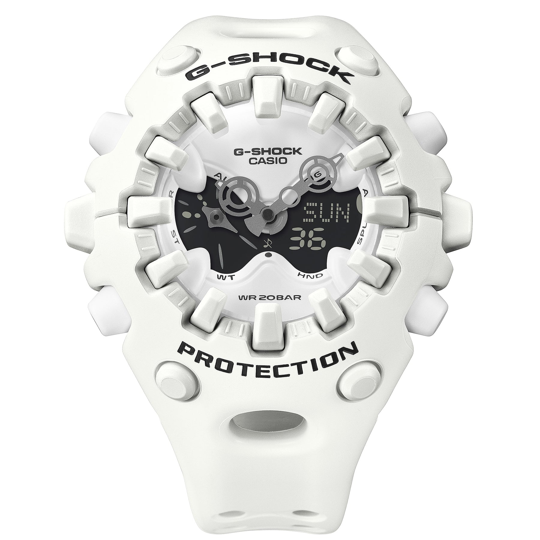 The GA-V01 brings together organic exterior form and sharp-edged components, combining these with a large, full-screen LCD, the newly developed Shock Release Hand and other innovative ideas reflecting the G-SHOCK identity of toughness.