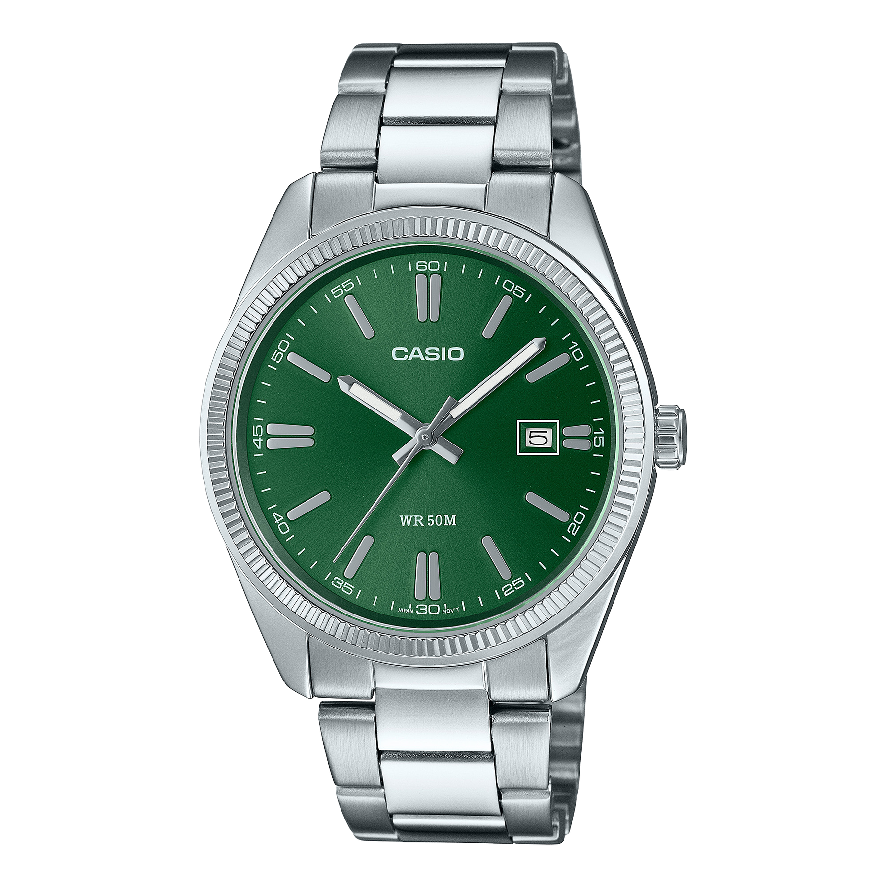 Introducing the CASIO MTP1302PD-3A Watch, a perfect blend of style and functionality. This exquisite green dial watch from CASIO's collection embodies timeless elegance, making it a must-have accessory for the modern man.