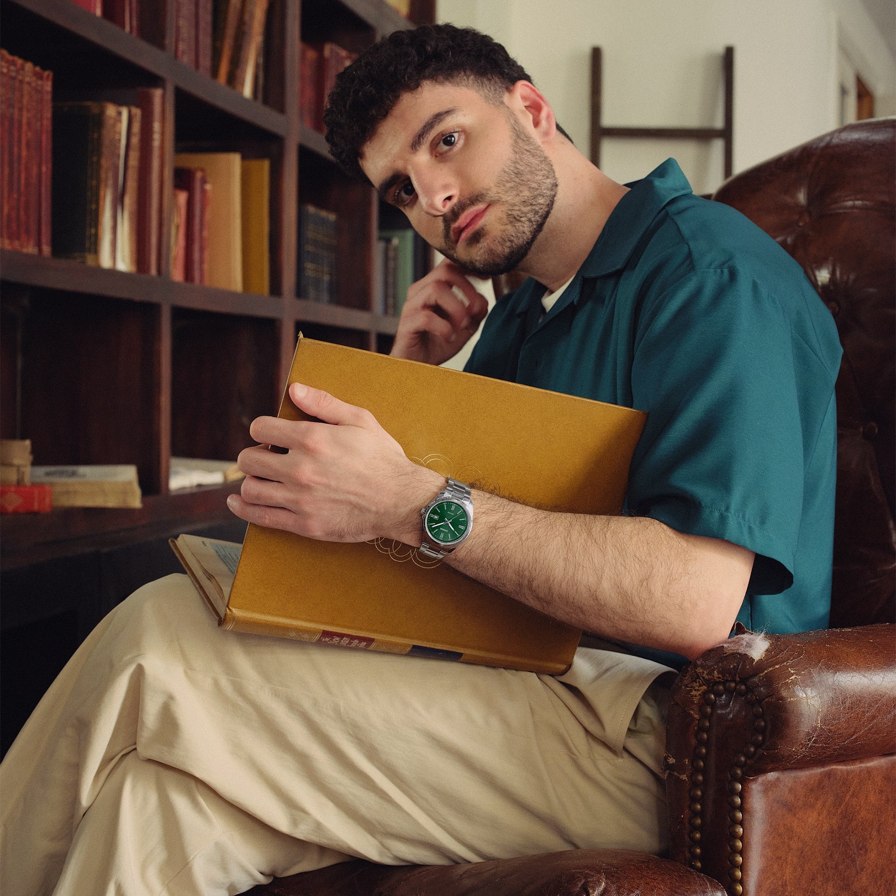 Crafted with precision and attention to detail, this watch features a sleek stainless steel case and a band that provides both sophistication and durability that can withstand everyday wear. The green dial adds a striking touch of refinement, complemented by luminous hands and markers for easy readability in all lighting conditions.