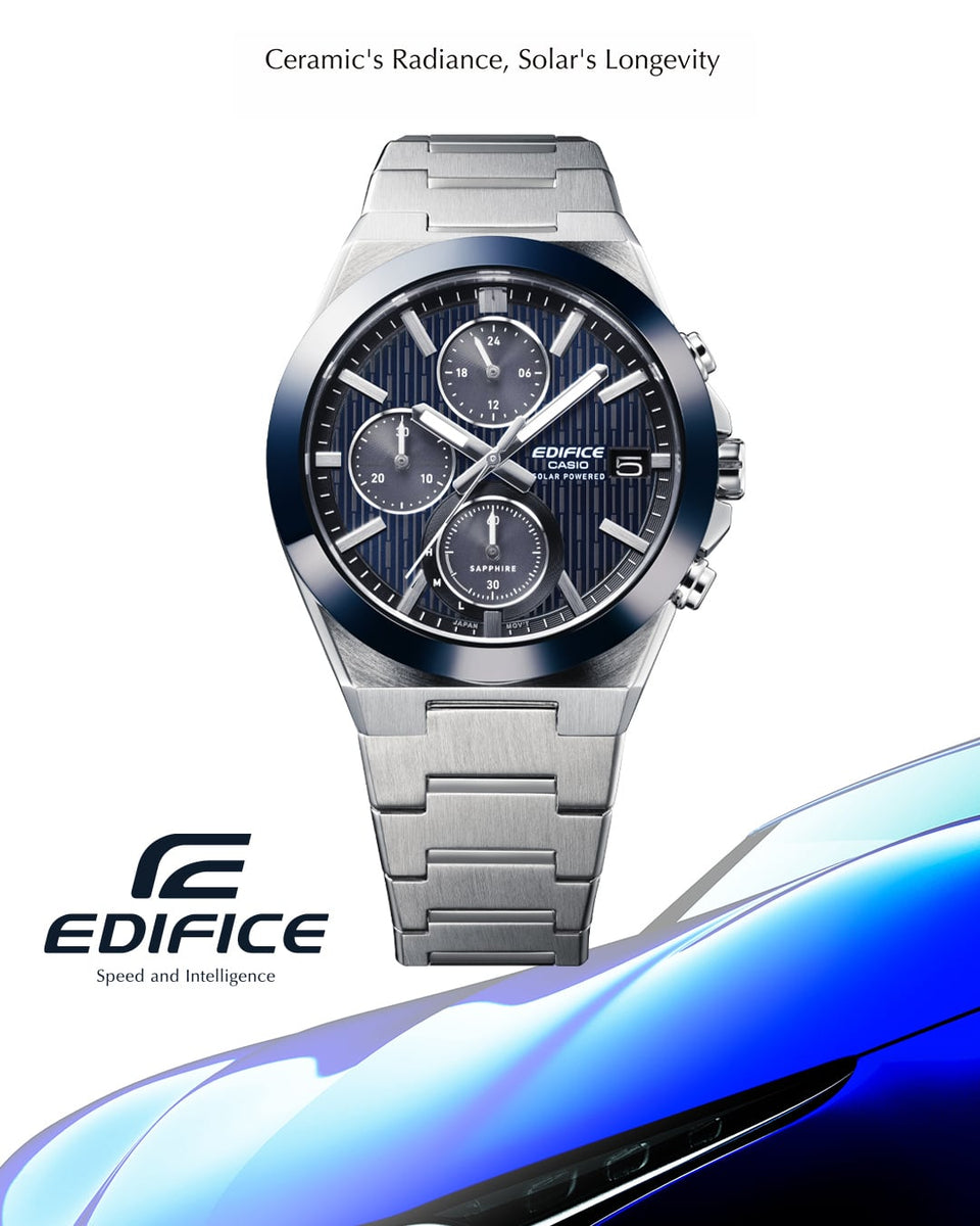 Long-lasting beauty and unwavering reliability in one: Solar-powered EDIFICE adorned with a ceramic bezel