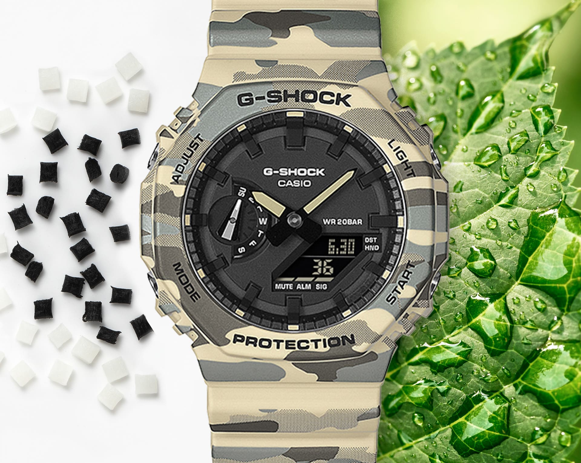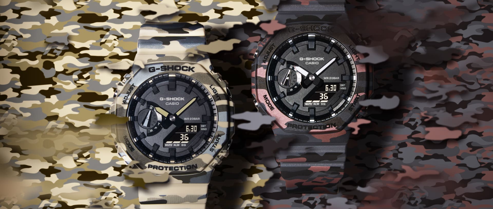 an original G-SHOCK camouflage pattern that adds a bold accent to any style.