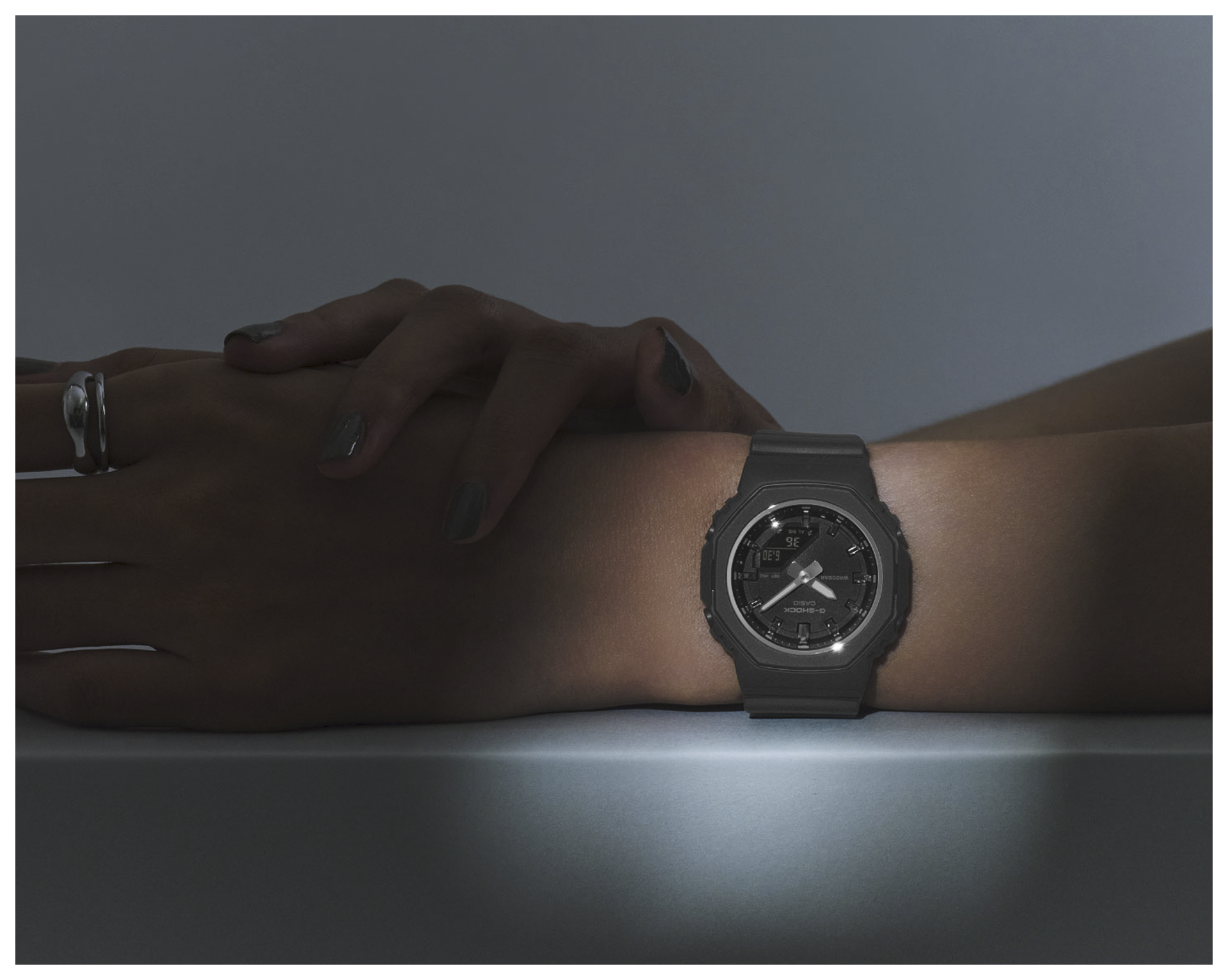 Octagonal bezel with a touch of sheen — compact G-SHOCK style