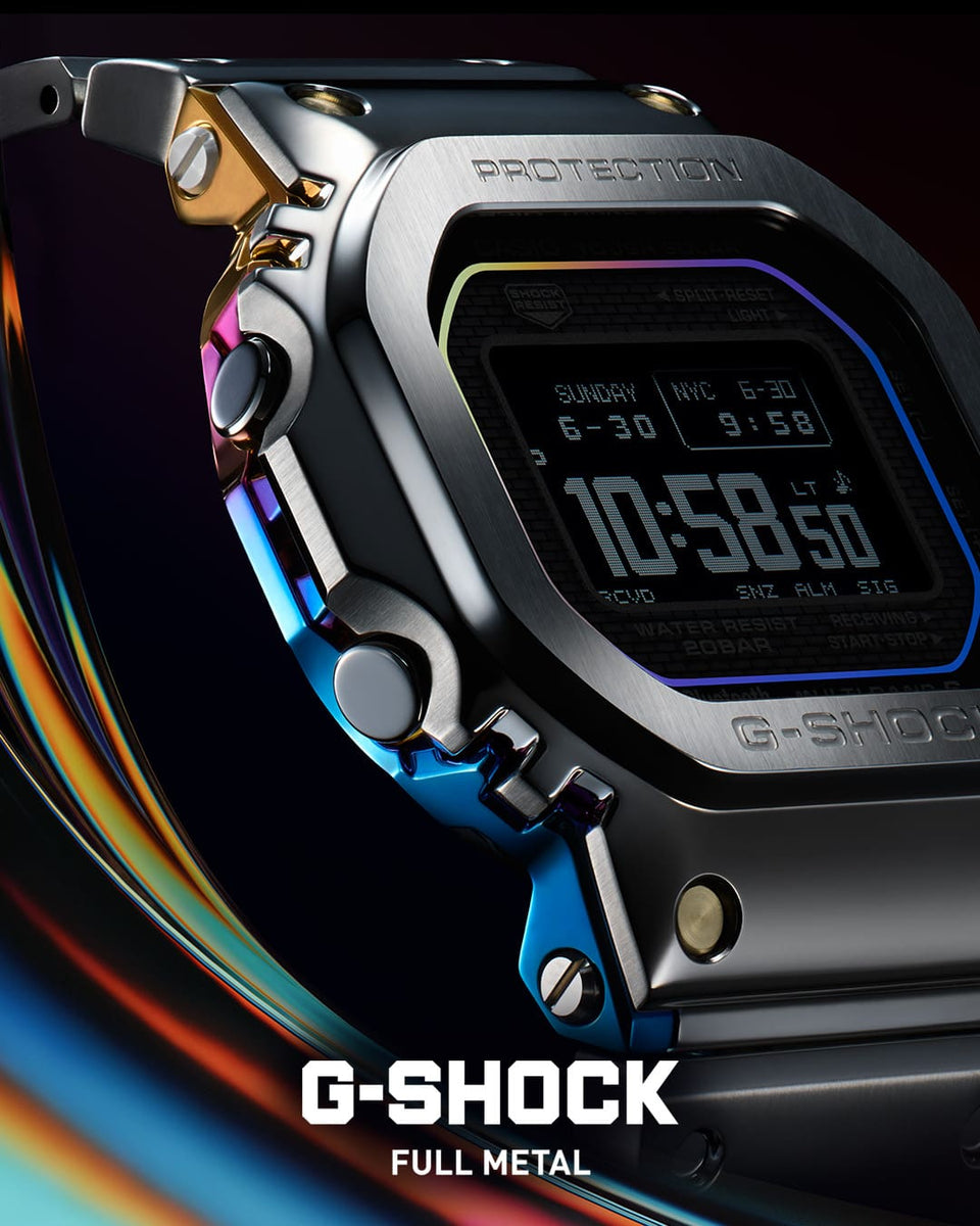 The watch’s highly original structure highlights the dimensional form of the center case while incorporating a resin internal protector to realise a full-metal construction, thereby maintaining the shock resistance that defines G-SHOCK.