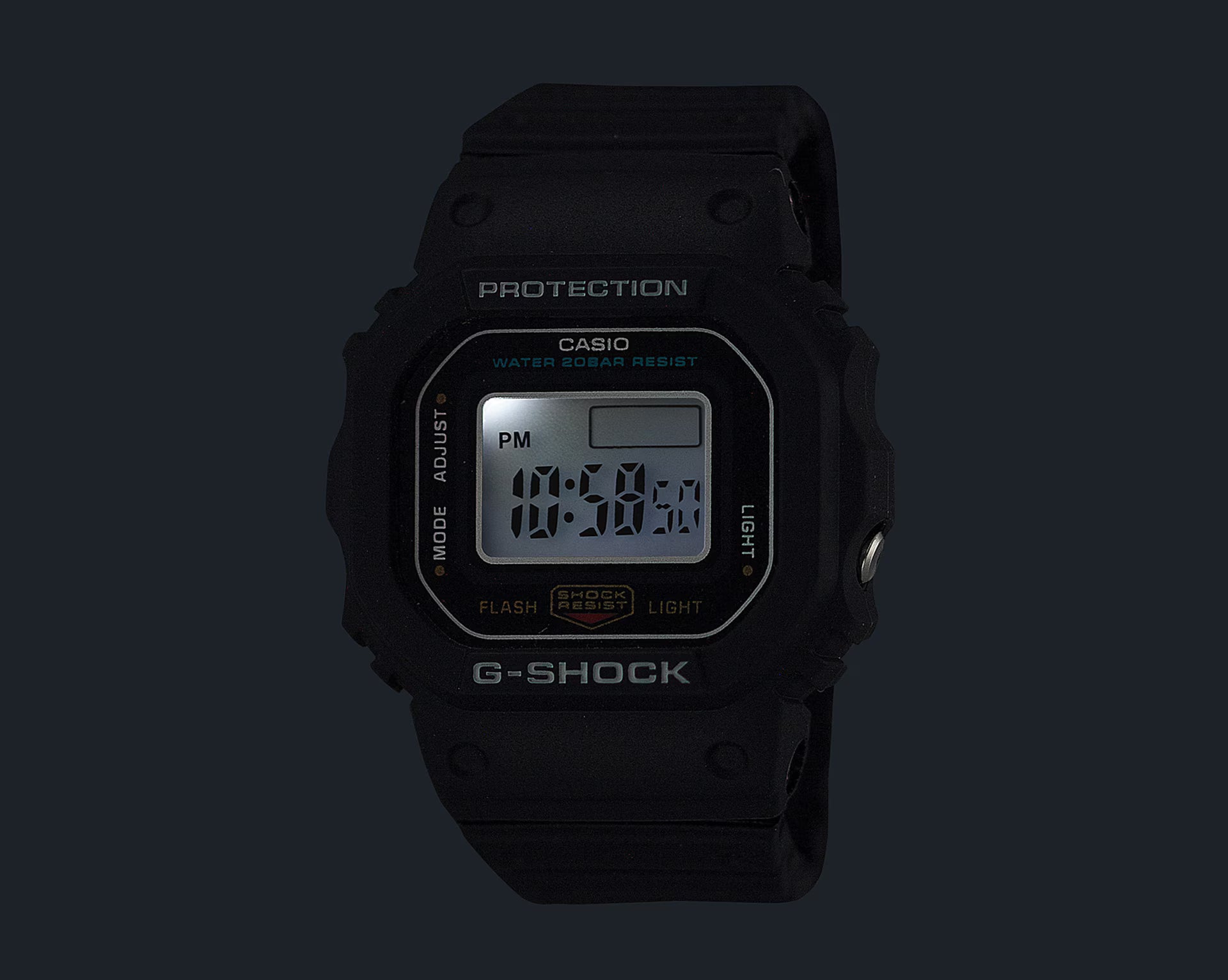 In a nod to the 5600 line of G-SHOCK timepieces, the watch face features a 6-digit LCD that presents not only the time down to the second, but also calendar, dual time, and stopwatch functionality. The three side buttons are not merely decorative. They operate a variety of functions, including switching modes, turning on the light, and more.