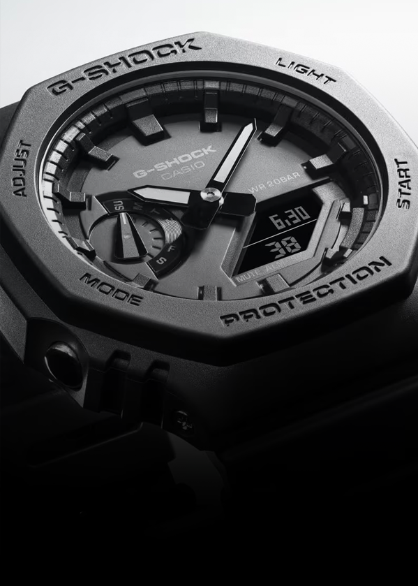The original; a shock and vibration resistant structure, coupled with 20-bar water resistance, this timepiece is tailored for use in various settings, diverse conditions, and a spectrum of activities. From intense sports, swimming, surfing, jet skiing, and workouts to everyday tasks like washing up and showers, it stands ready to endure any situation.