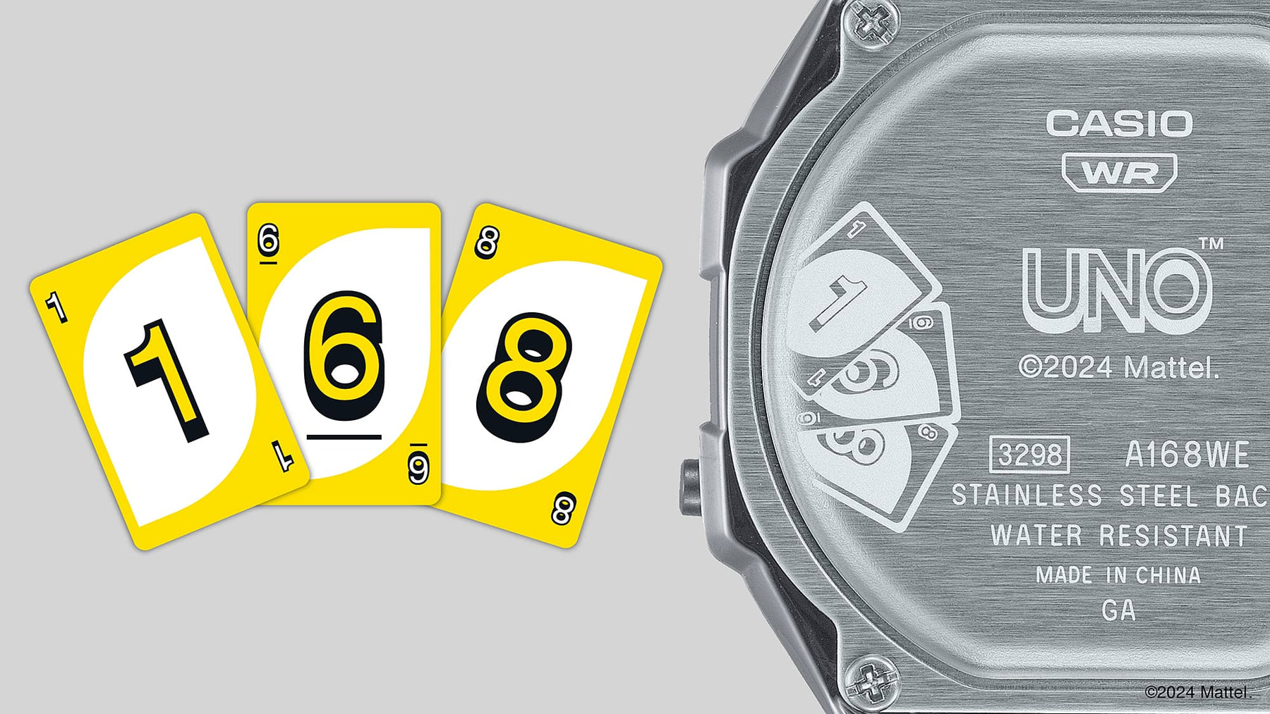 This timepiece comes in special packaging that not only features the four classic UNO™ colours, but is also made from recycled materials in commitment to the environment. You won’t want to miss out on this great hand — a very special collaboration between UNO™ and CASIO, two brands launched in the 1970s with fans around the world to this day. Mattel Games Mattel produces games that deliver fun with friends and family for players of all ages.