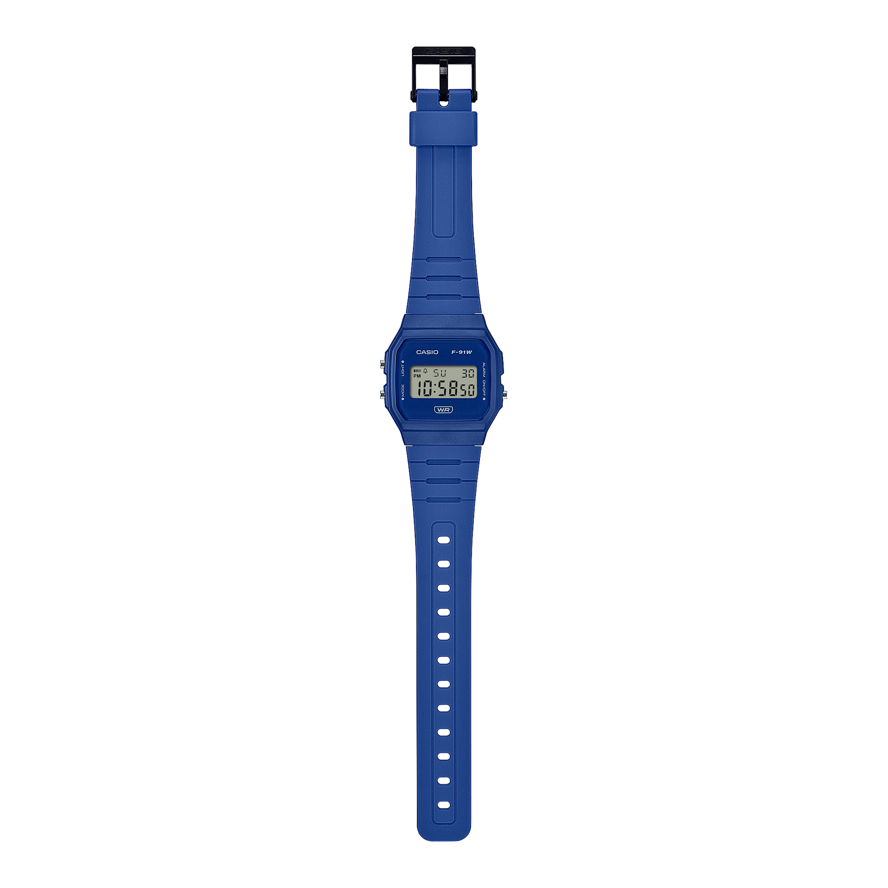 A favourite for decades — the slim, lightweight F-91 with digital LCD now with a minimalist face, fewer mode indicators, and more environmentally responsible materials.