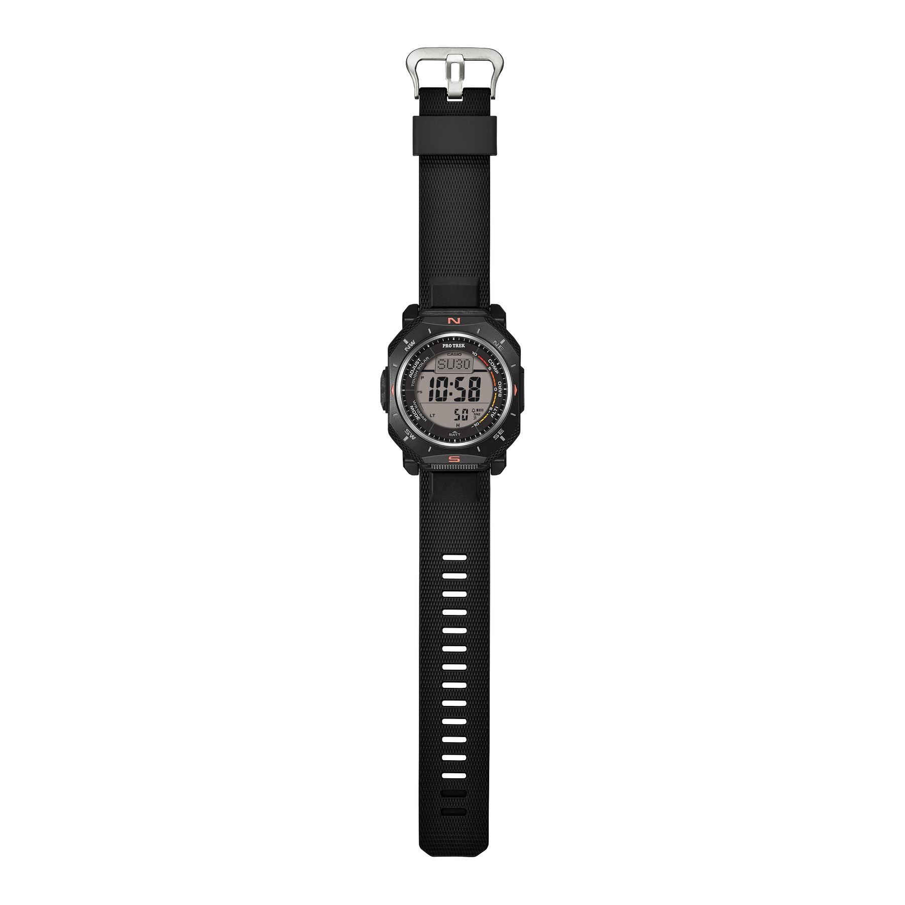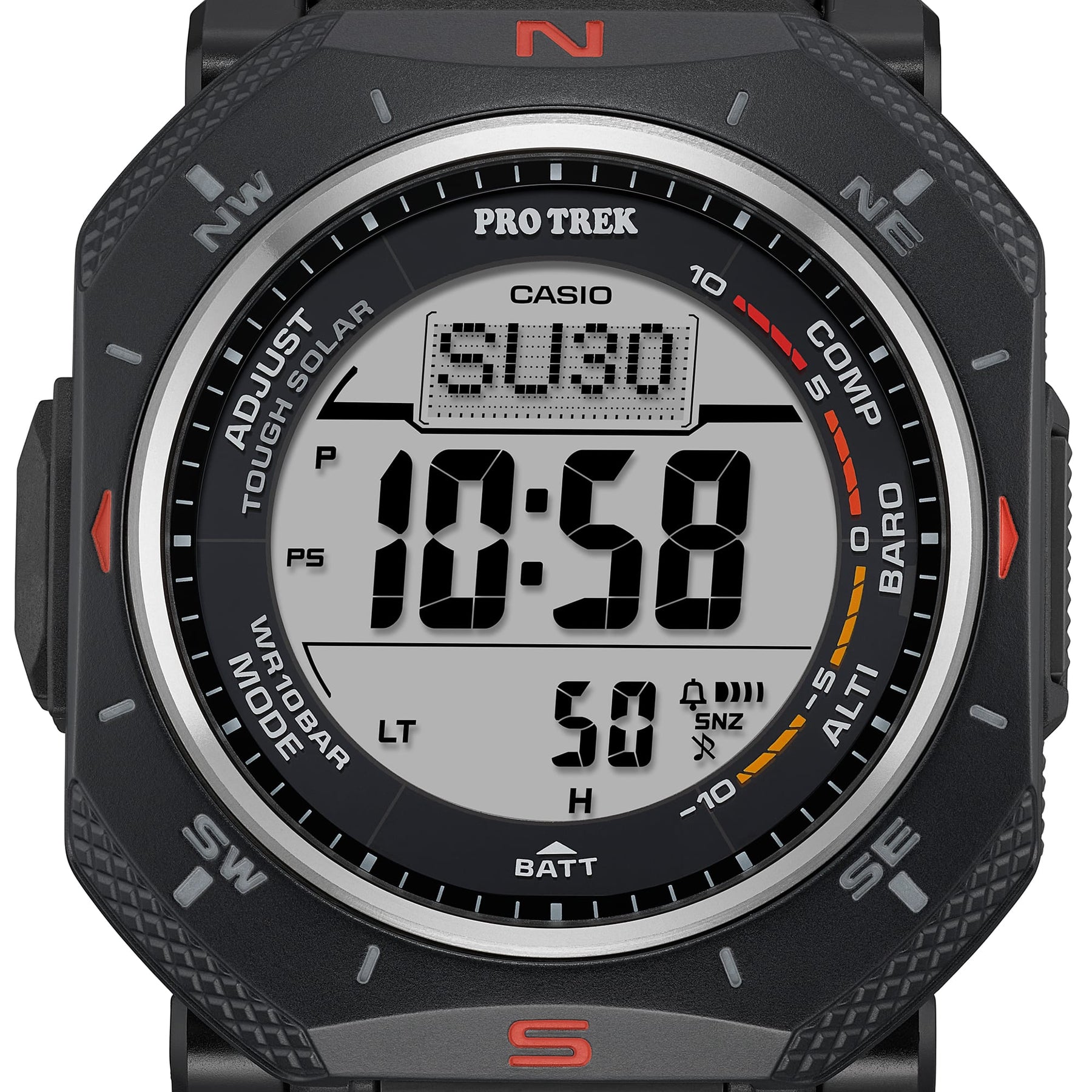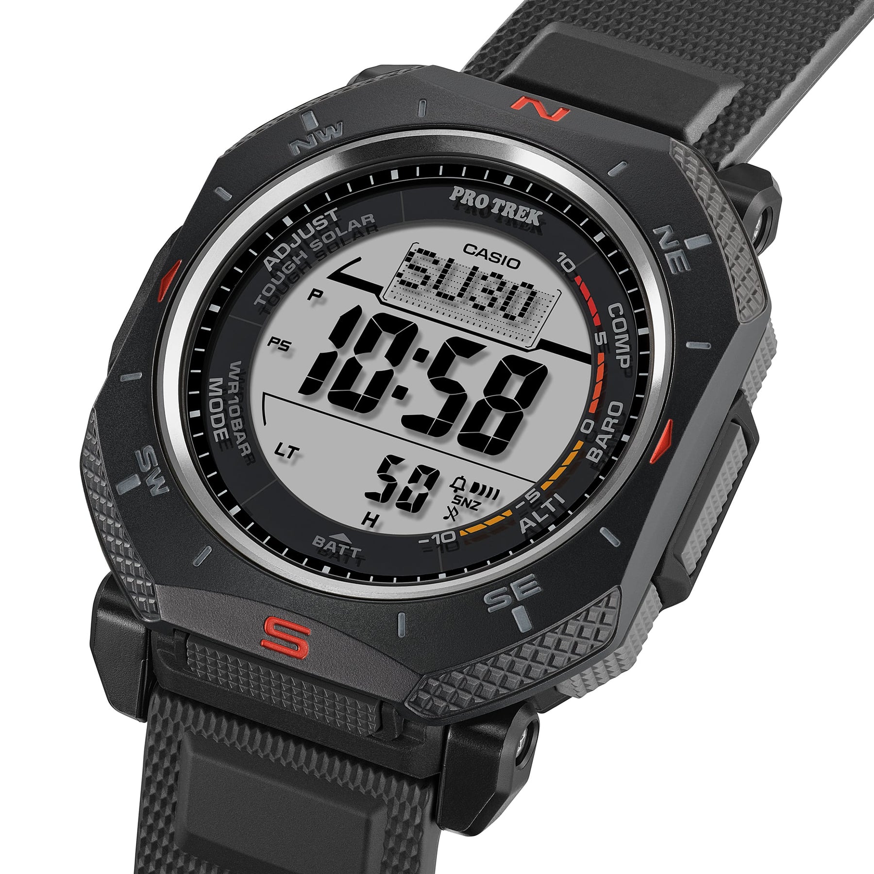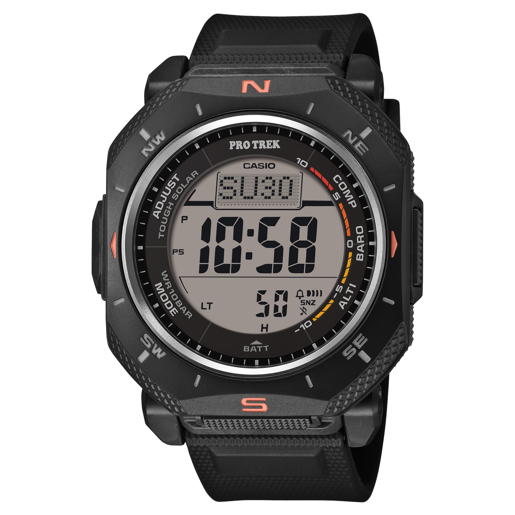PRO TREK timepiece featuring Duplex LCD for enhanced compass readability, with Triple Sensor and Tough Solar