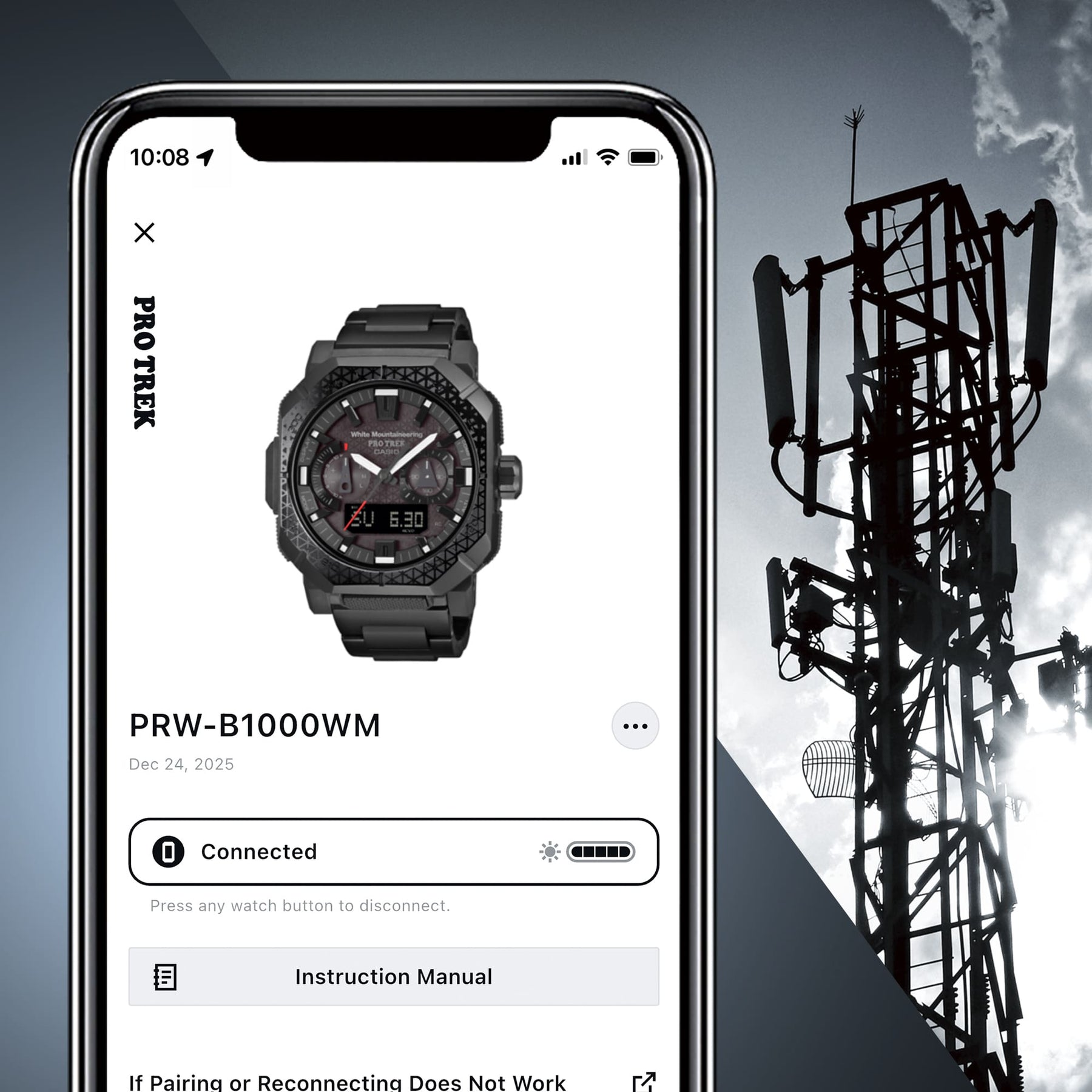 Equipped with both radio-wave time calibration and Bluetooth®, the watch ensures precision timekeeping two ways. Multiband 6 tunes in with high-sensitivity reception to radio-wave time signals transmitted from six stations around the world to keep you on track when trekking far from the Internet.