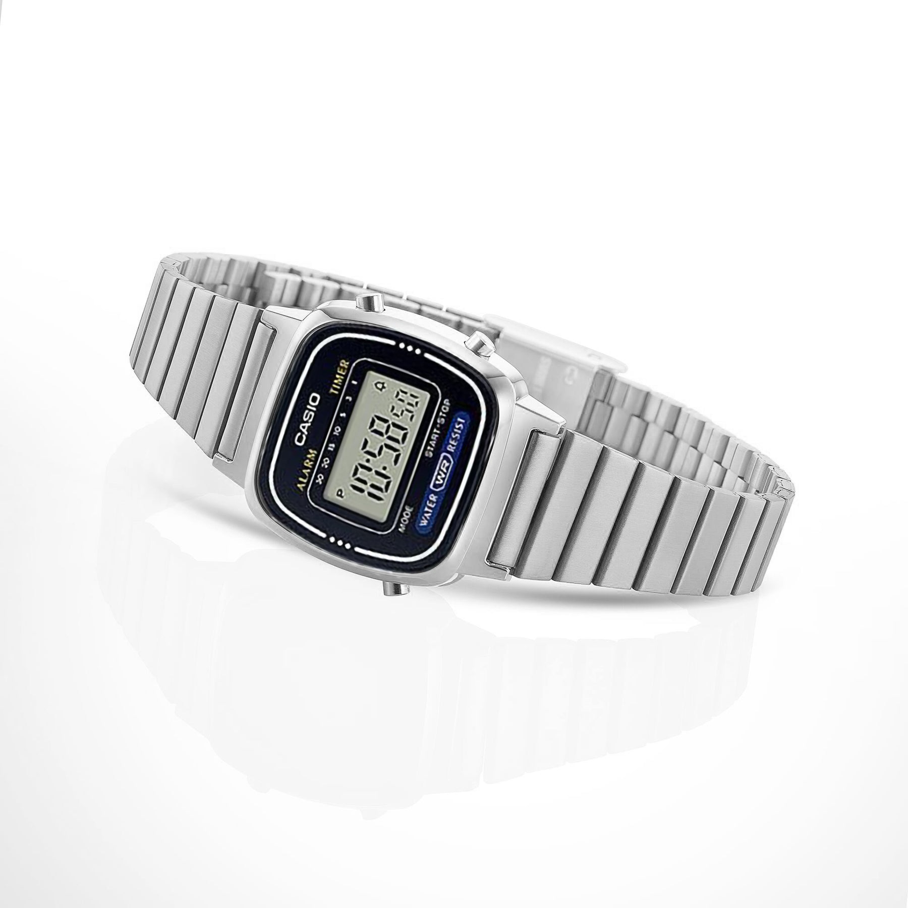 This collection throws back to the original CASIO designs which incorporate the brilliant technology and classic design which people have come to know and love. Finished with a stainless-steel band, this compact watch fits comfortably on any wrist.