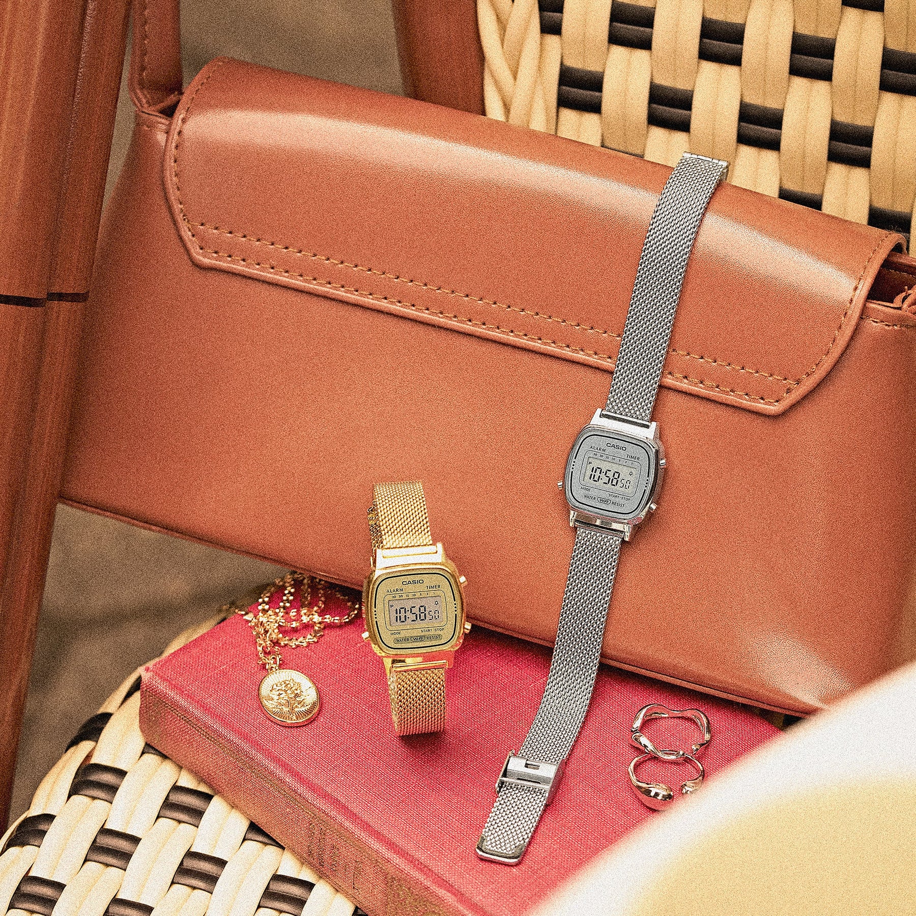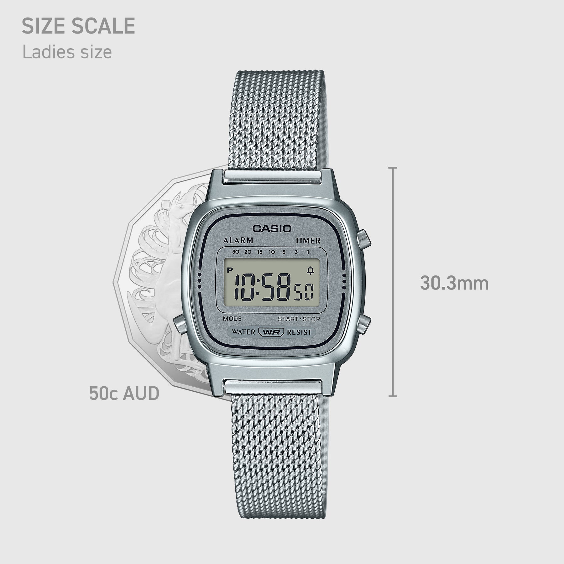 This collection throws back to the original CASIO designs which incorporate the brilliant technology and classic design which people have come to know and love. Finished with a stainless-steel milanese band, this compact watch fits comfortably on any wrist.