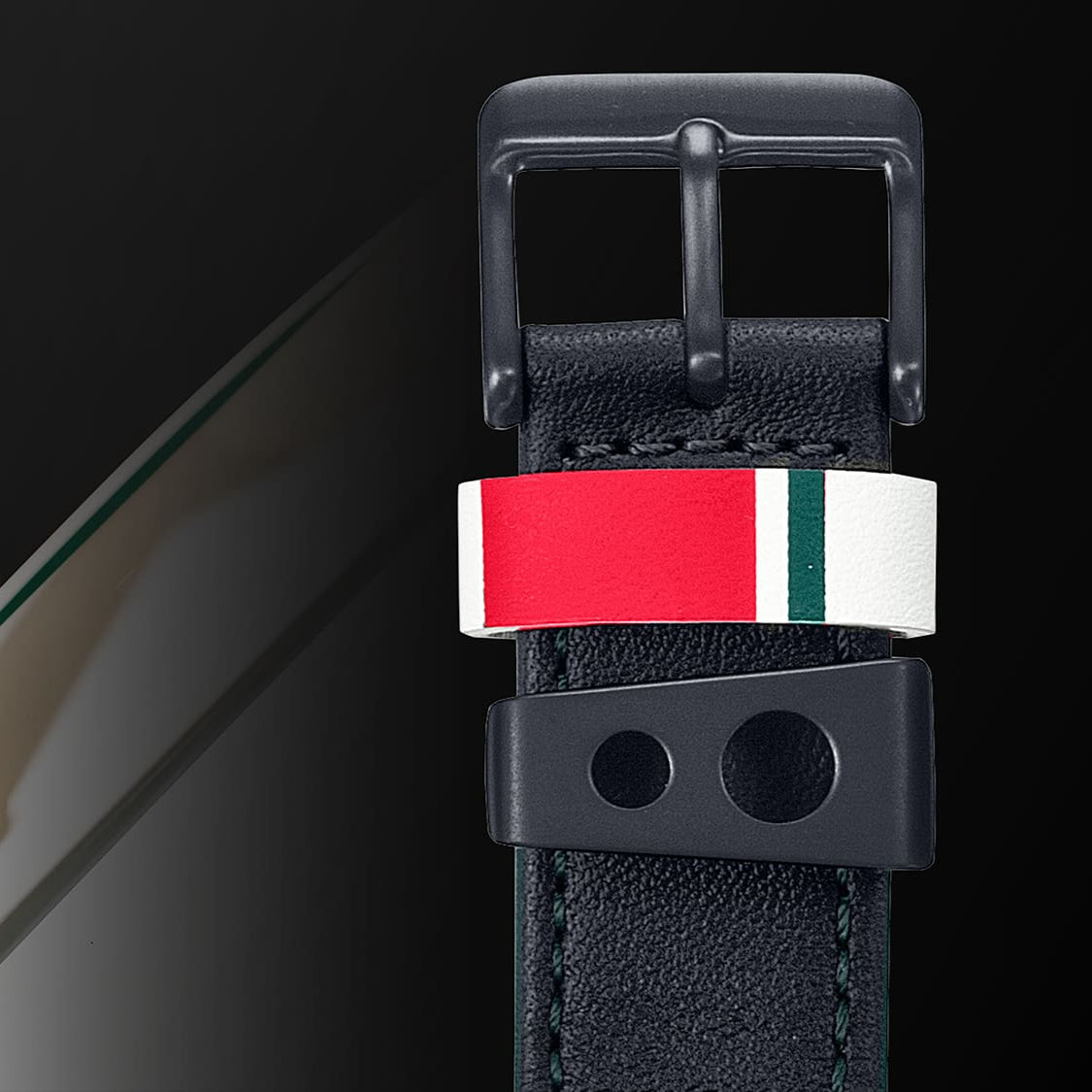 This collaboration pays homage to the special KP47 Starlet that made TOM’S Racing an overnight sensation with an impressive streak of minor touring race victories in the 1970s: 22 pole positions, 20 wins and three series champion victories. White, red, and green — colours symbolizing the racing machine’s fearless image — are incorporated throughout the dial and elsewhere.
