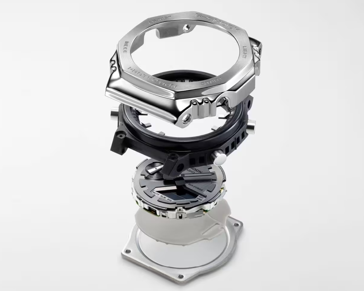 Go sleek, sharp and bold with a G-SHOCK standard-bearer in a metal-clad octagonal take on the original iconic design.