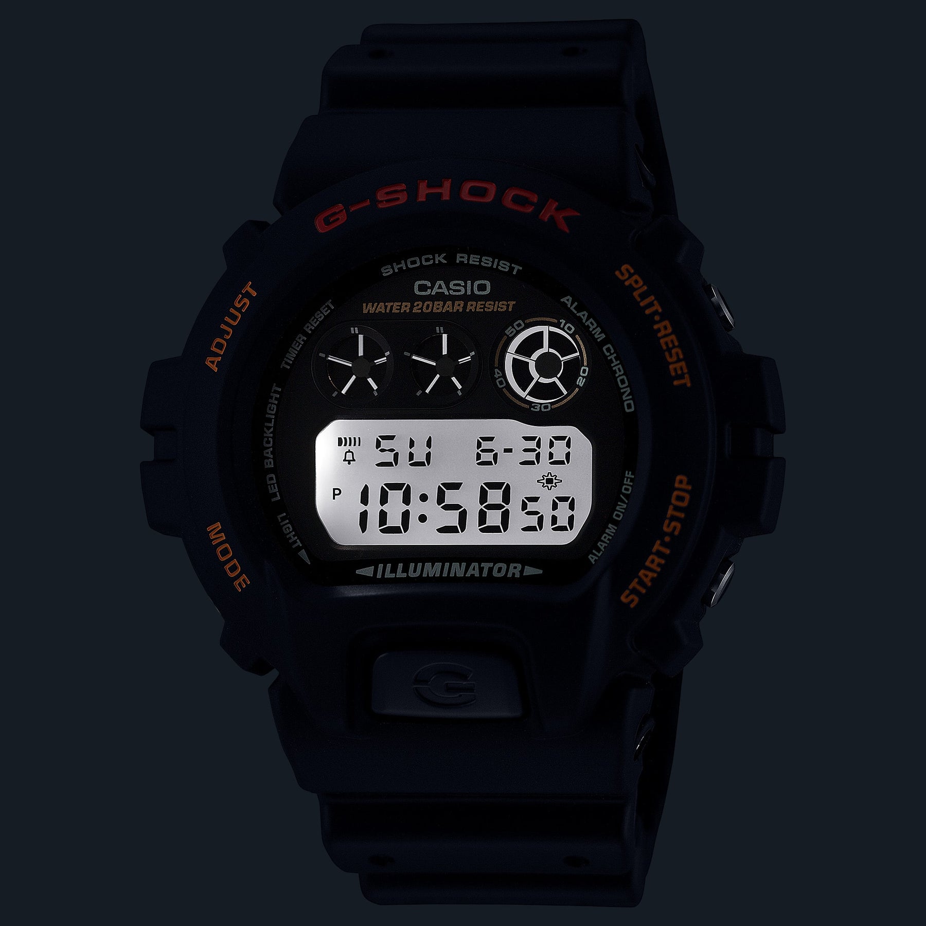 From G-SHOCK, the watch brand dedicated to the pursuit of Absolute Toughness. This G-SHOCK classic of the 6900 line gained popularity in the 1990s, taking its place as an icon of the era. The large LCD and the LED backlight make this highly versatile design a great companion for a variety of styles — from utilitarian practicality, to street trends, to sports fashion.