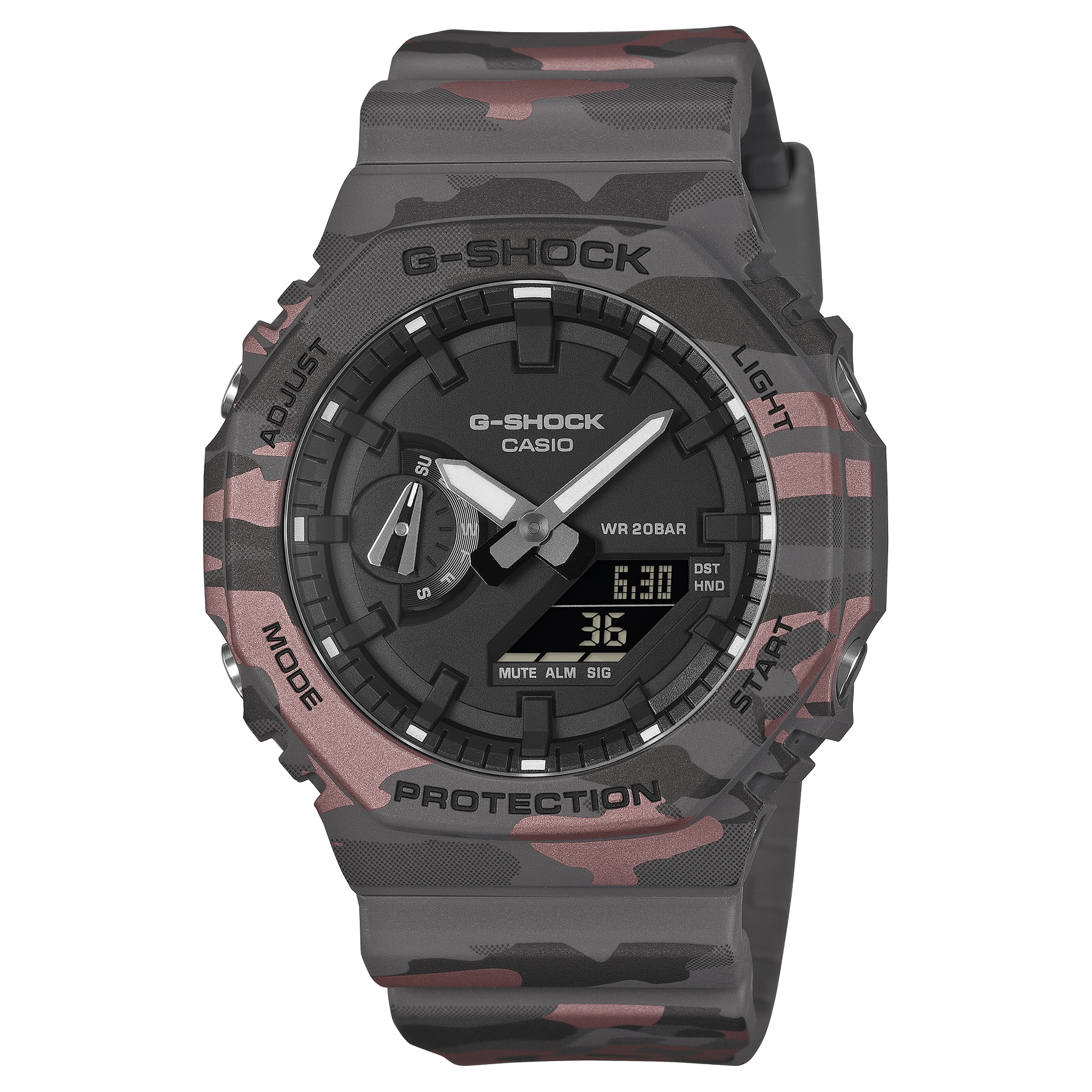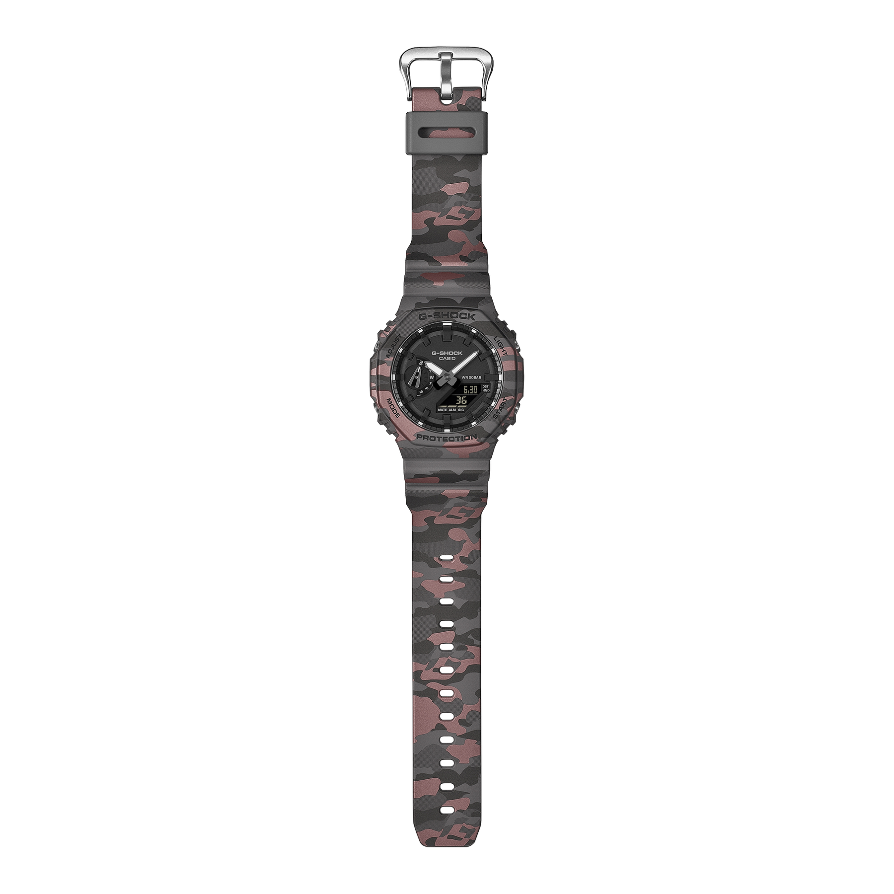Fashion forward, camouflage cool — the ever-popular streamlined GA-2100 takes on an original G-SHOCK camouflage pattern that adds a bold accent to any style.