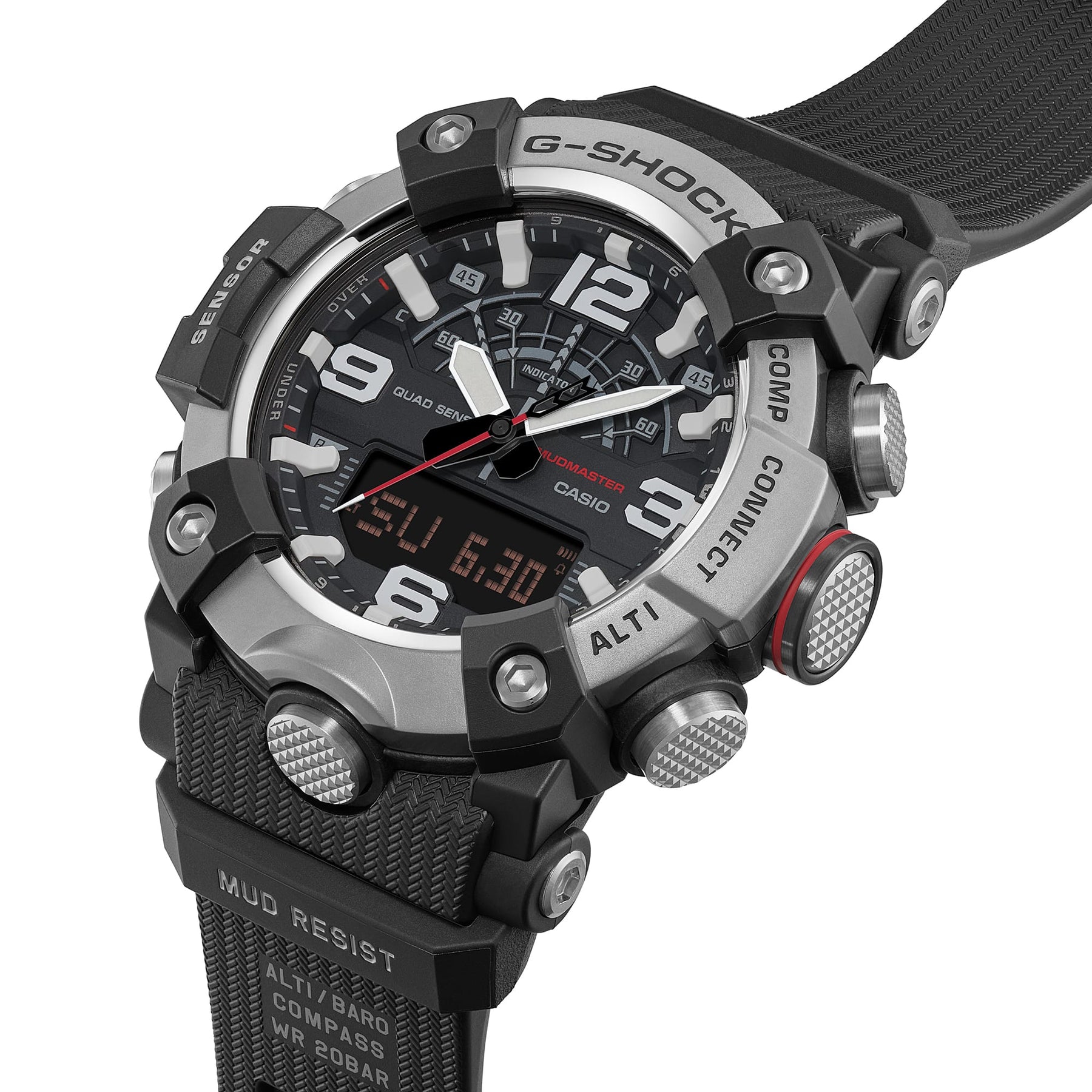 These MUDMASTER employ high rigidity carbon for the carbon fibre-reinforced case to keep damage and warping at bay and ensure a tight seal and excellent shock resistance. Featuring a filter to protect against mud, a stainless-steel panel back, and a back cover made of shock-resistant fine resin embedded with glass fibres, these timepieces provide a high level of resistance to dust and mud. Key components for the case and band are made with bio-based resin. Produced using renewable organic resources, this material is expected to help reduce environmental impact.