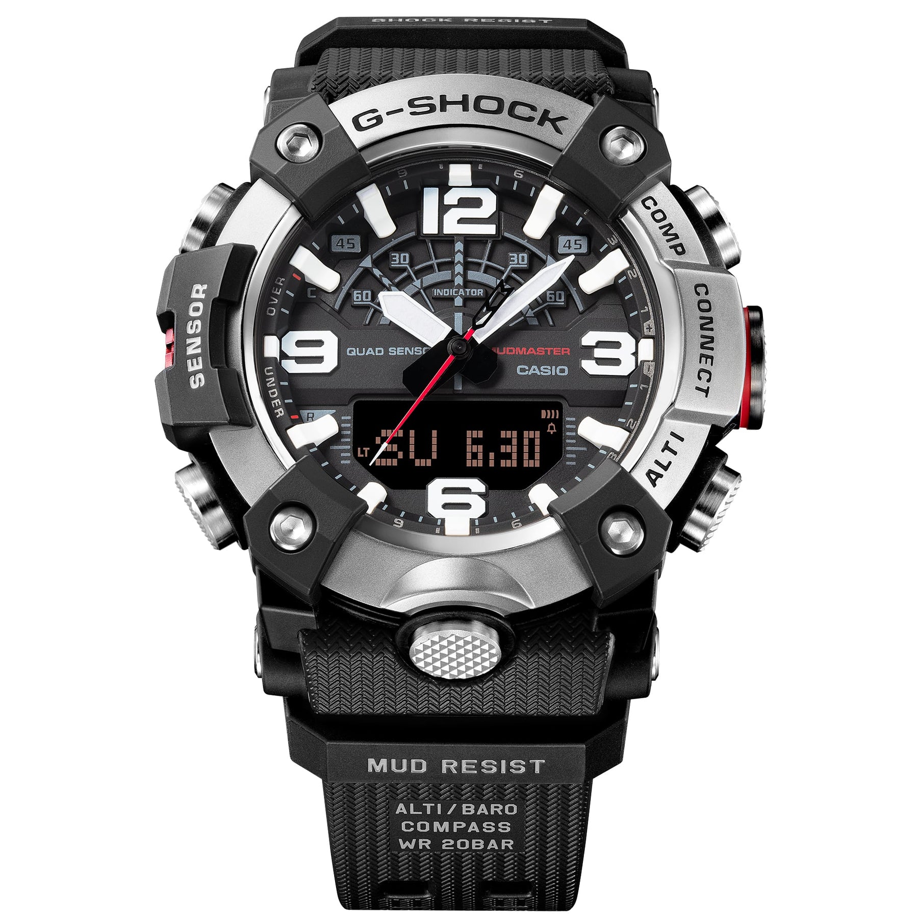 For the fearless adventurer, a tough and rugged Master of G MUDMASTER featuring a strong, durable metal bezel.