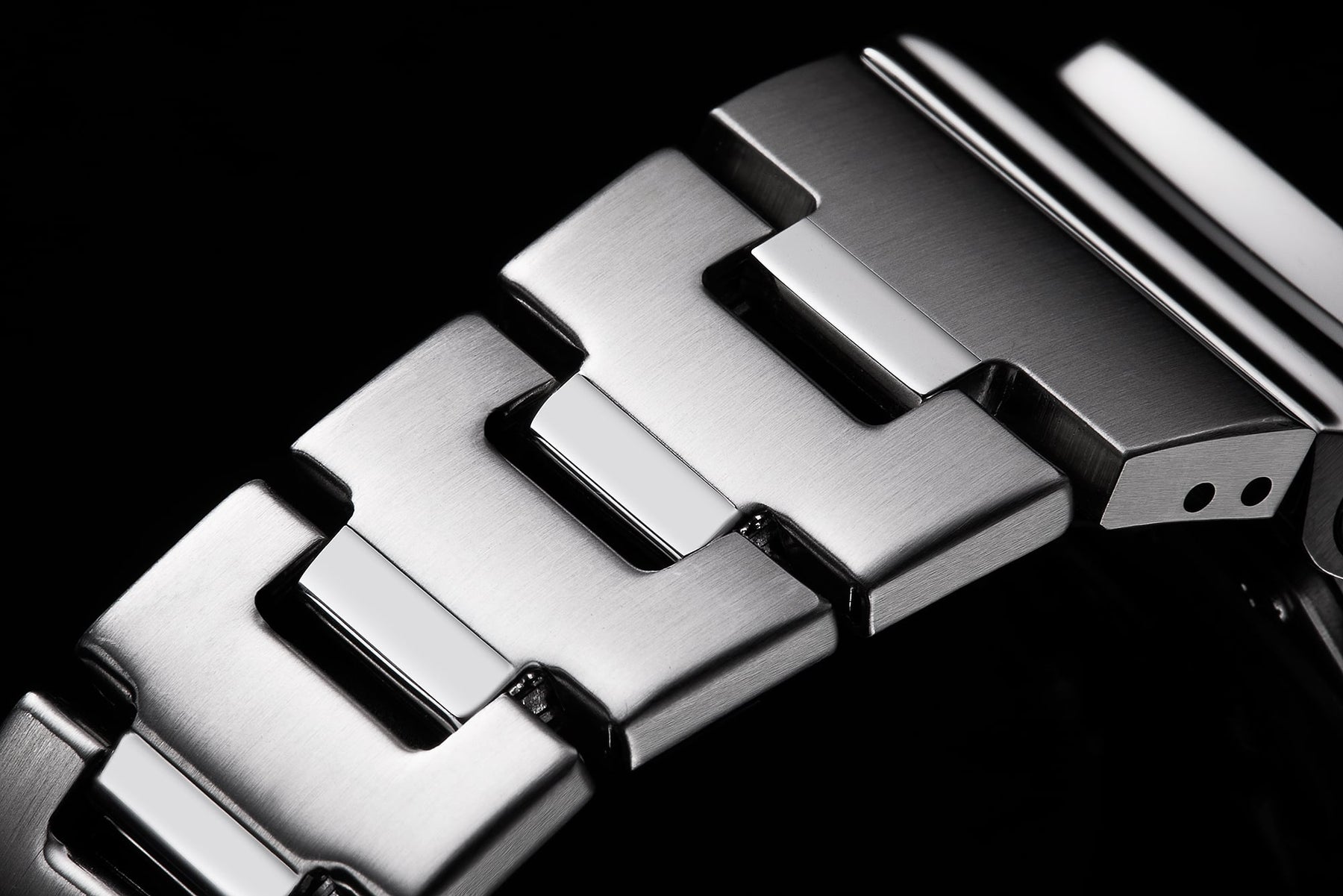 The stainless steel bezel is wrapped in a fiberglass-reinforced resin case. The octagonal bezel is finely forged, cut and polished, with individual hairline and mirror finishes all the way to the connection part at the bottom.