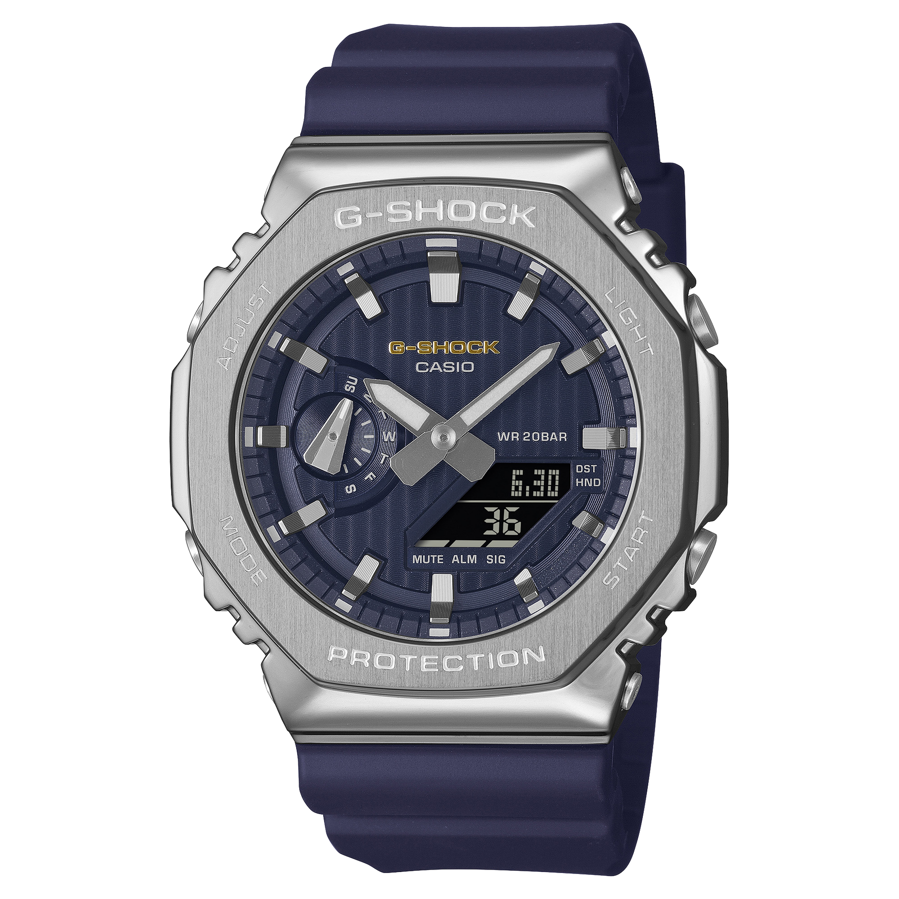 Two pair-perfect sizes from the popular digital-analogue 2100 line — the GM-2110SH and GM-S2110SH — feature a dial inspired by the magic of starry skies with metal elements that add shine and texture, and a hairline- and matte-finished bezel and indexes that project poised sophistication. The gold-coloured G-SHOCK logo on the dial shines like a star against subtle stripes evoking stardust gently drifting across the sky.