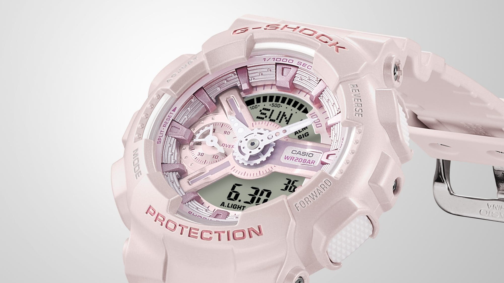 From the ever-popular 110 line, the slim and compact GMA-S110 offers a more comfortable and refined fit on slimmer wrists.
