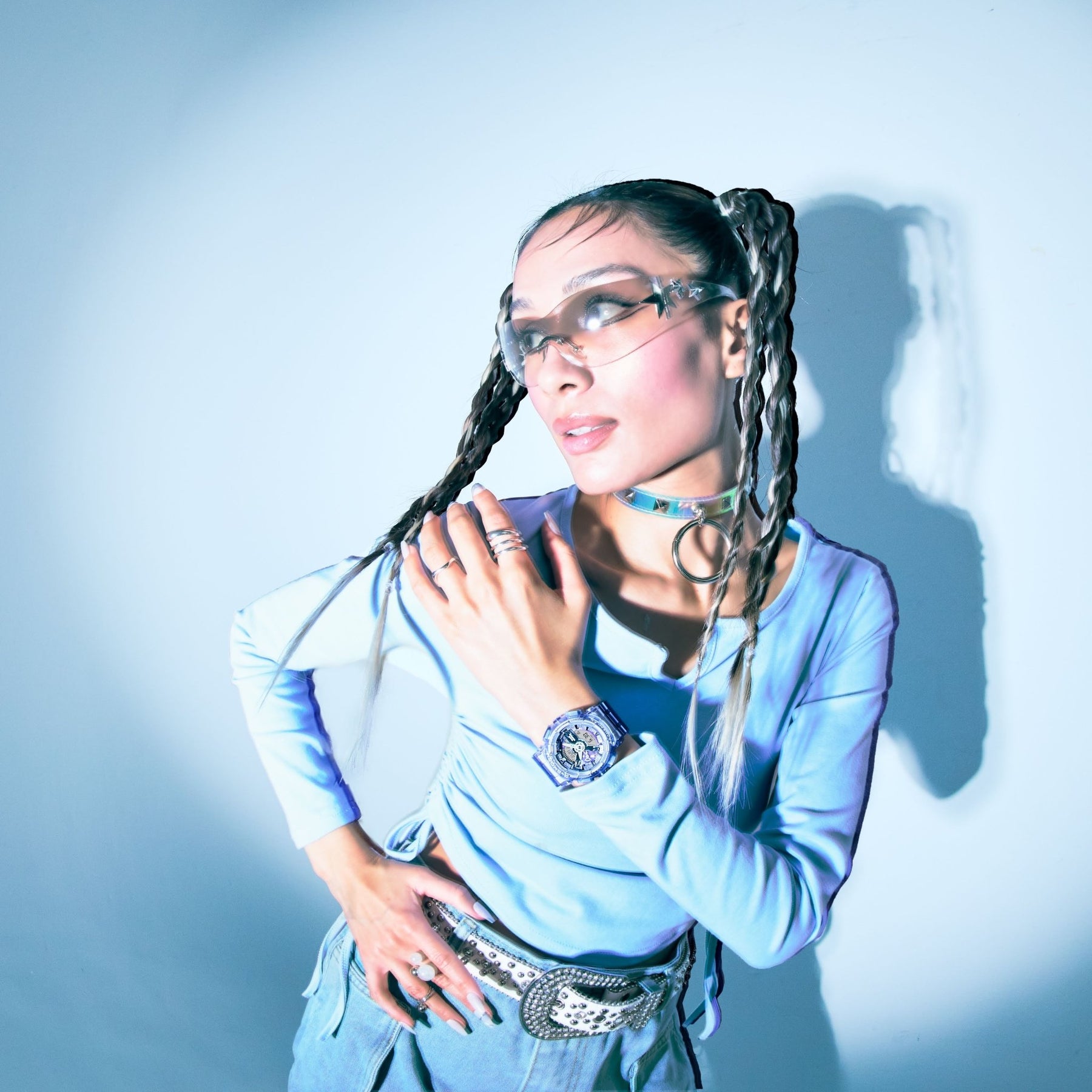 Translucent materials transport this watch into the realm of science fiction. The multilayered arrangement of finely detailed components gives striking depth and dimension to the dial, which is accented with a vapour deposition finish on the Y-shaped beam and dial ring for a sophisticated design that is out of this world.