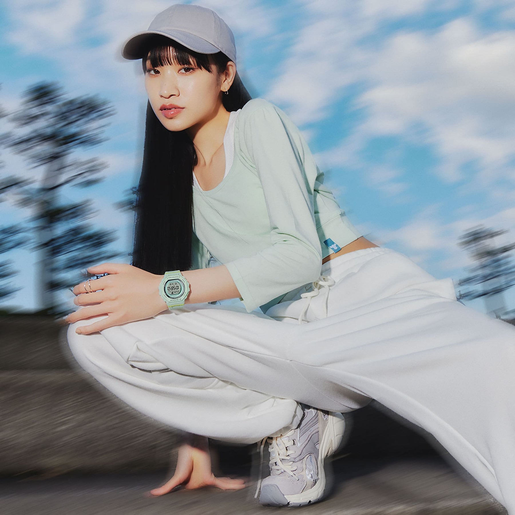 A selection of muted hues with matte textures complement the watch’s simple octagonal form. Paired with subtle accent colours, they produce appealing colour block designs. The dial is adorned with vapor-deposition processing and fabric patterns that pair well with sportswear.