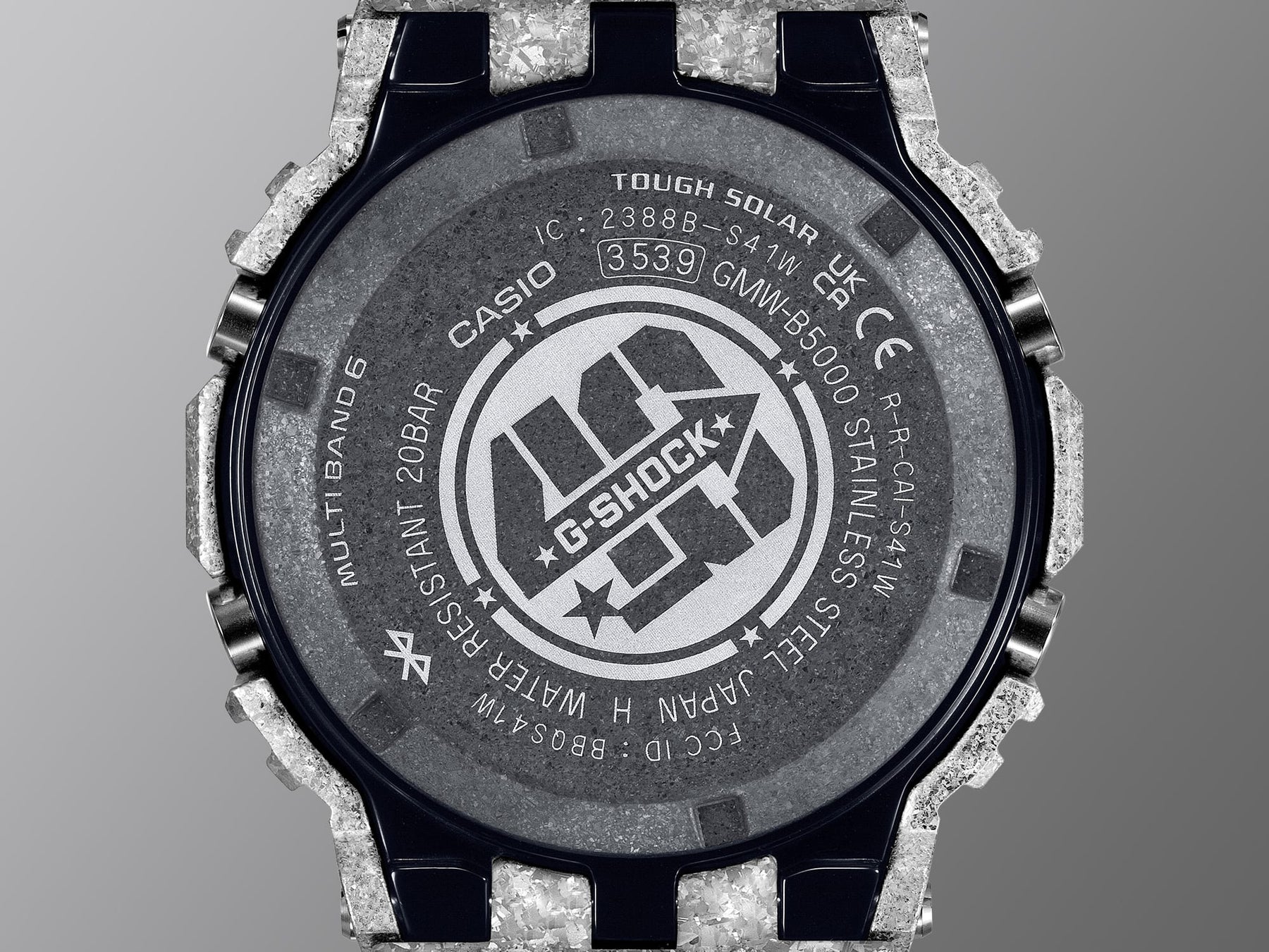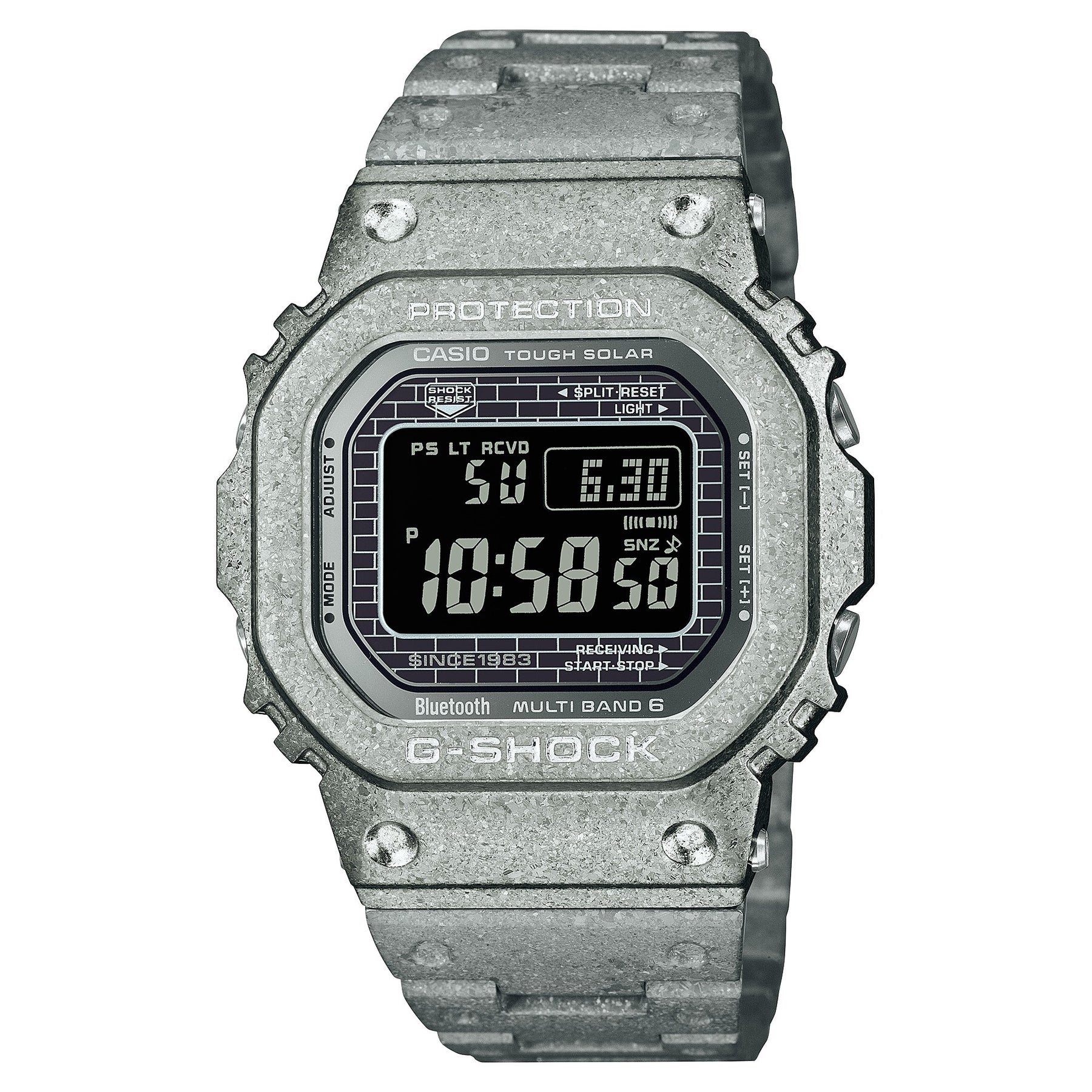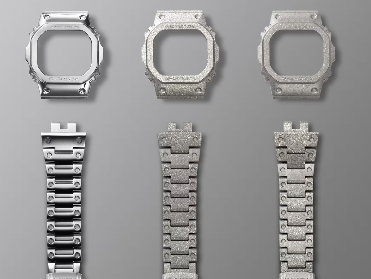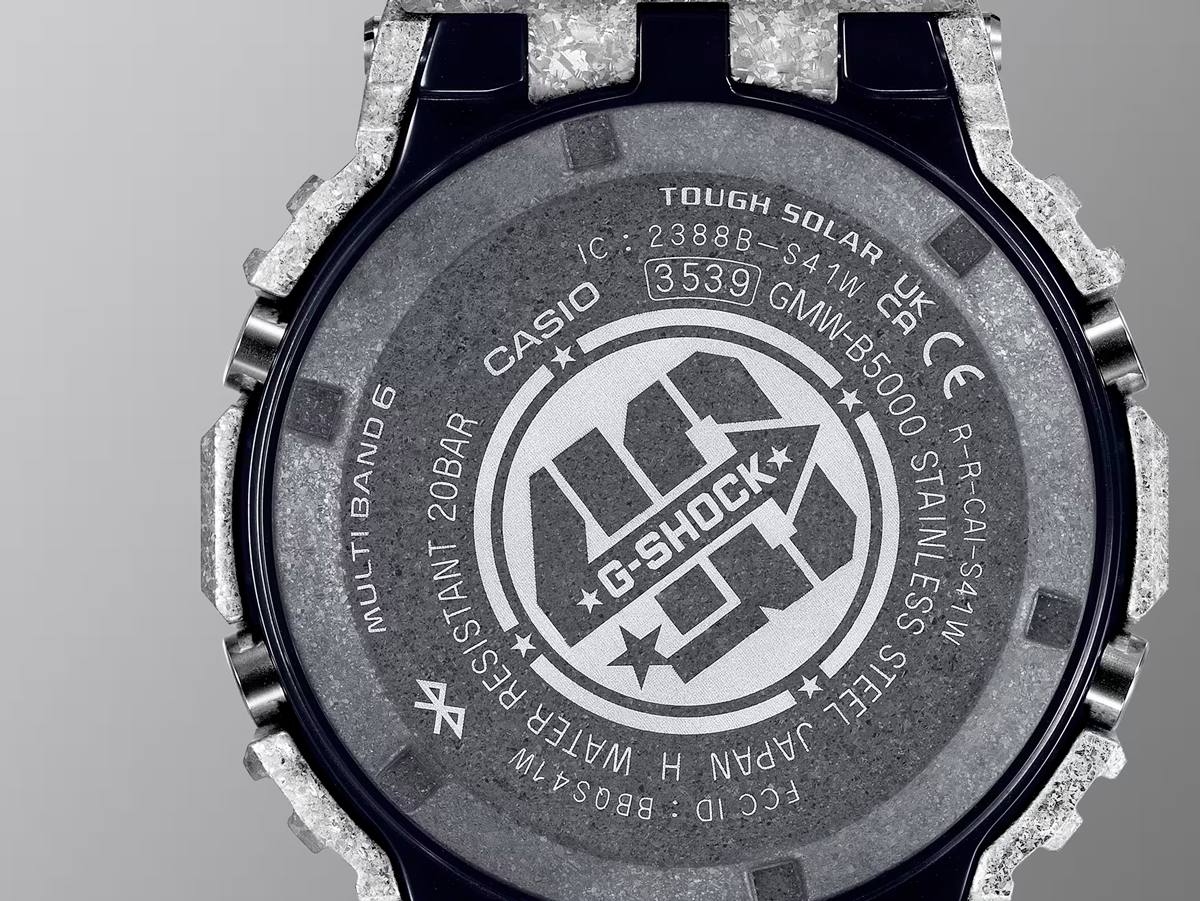 The texture of the stainless steel for this model is enhanced not only with the recrystallisation and deep-layer hardening processes, but also by an additional TiC coating. The screw-lock case back also has a DLC coating applied to it and is engraved with the 40th anniversary logo. A star is engraved on the Mode button on the lower left side of the case, and the phrase “SINCE 1983” appears on the dial.