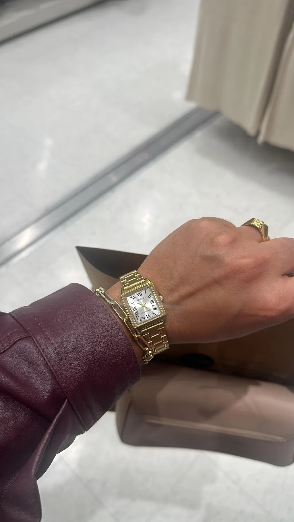 The sleek, rectangular dial, adorned with bold Roman numerals, offers a nod to timeless design. Its minimalist face, encased in a lustrous silver-tone bezel, exudes an air of understated luxury. The precise, silver-tone hands glide effortlessly across the face, ensuring you stay punctual while making an impression.